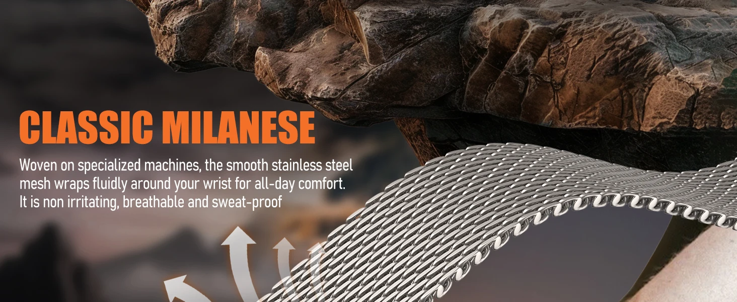 【Cómodo y resistente al sudor】: tejida en máquinas especializadas, la suave malla magnética de acero inoxidable se envuelve fluidamente alrededor de su muñeca para garantizar seguridad y comodidad durante todo el día.También es resistente a la natación y al sudor, lo que lo hace ideal para entrenamientos sudorosos, días de ocio informales o exploraciones al aire libre húmedas y duras como correr, caminar, montañismo o viajar.