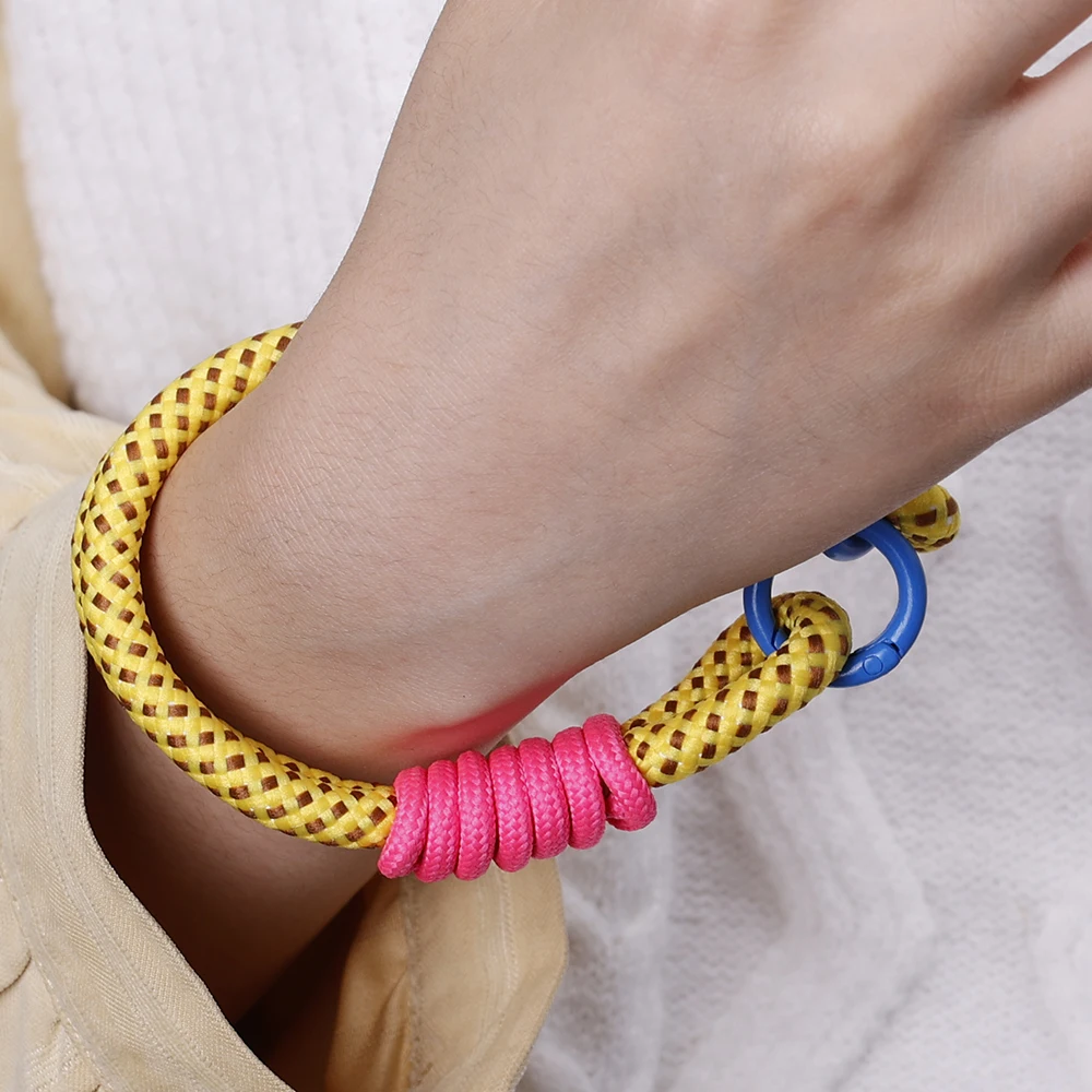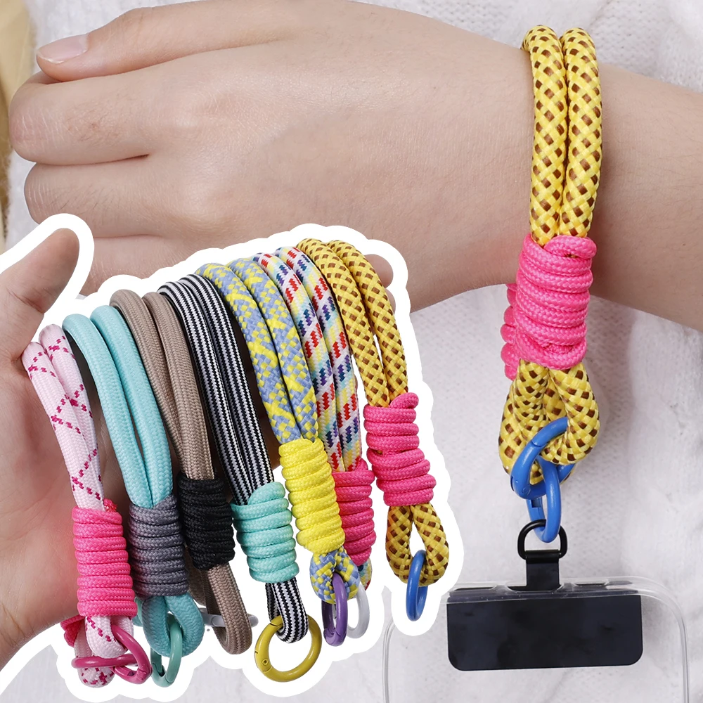 Comprar Correa de muñeca gruesa tejida a mano, cuerda colgante antipérdida, anticaída, estilo corto, cadena para teléfono IPhone, Samsung, Xiaomi