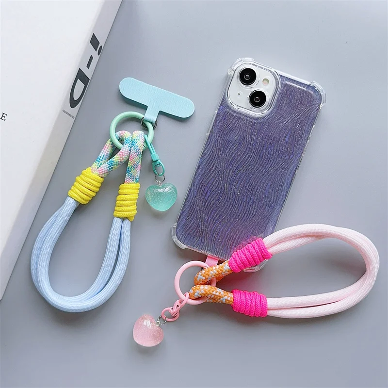 Comprar Correa de muñeca para teléfono móvil, accesorios de lujo con parche, cordones para llaves, pulsera colorida, joyería para teléfono, llavero