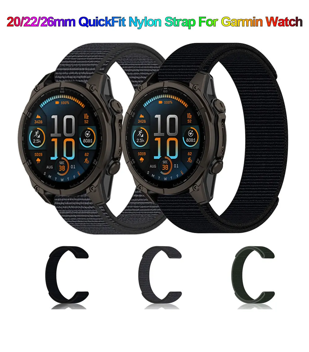 Correa de nailon 20 22 26mm para Garmin Quatix 8 Fenix 7X 7 Pro 7S Fenix 6X 6 6S 5X 5Plus Tactix 8 7 Forerunner 970 965 955