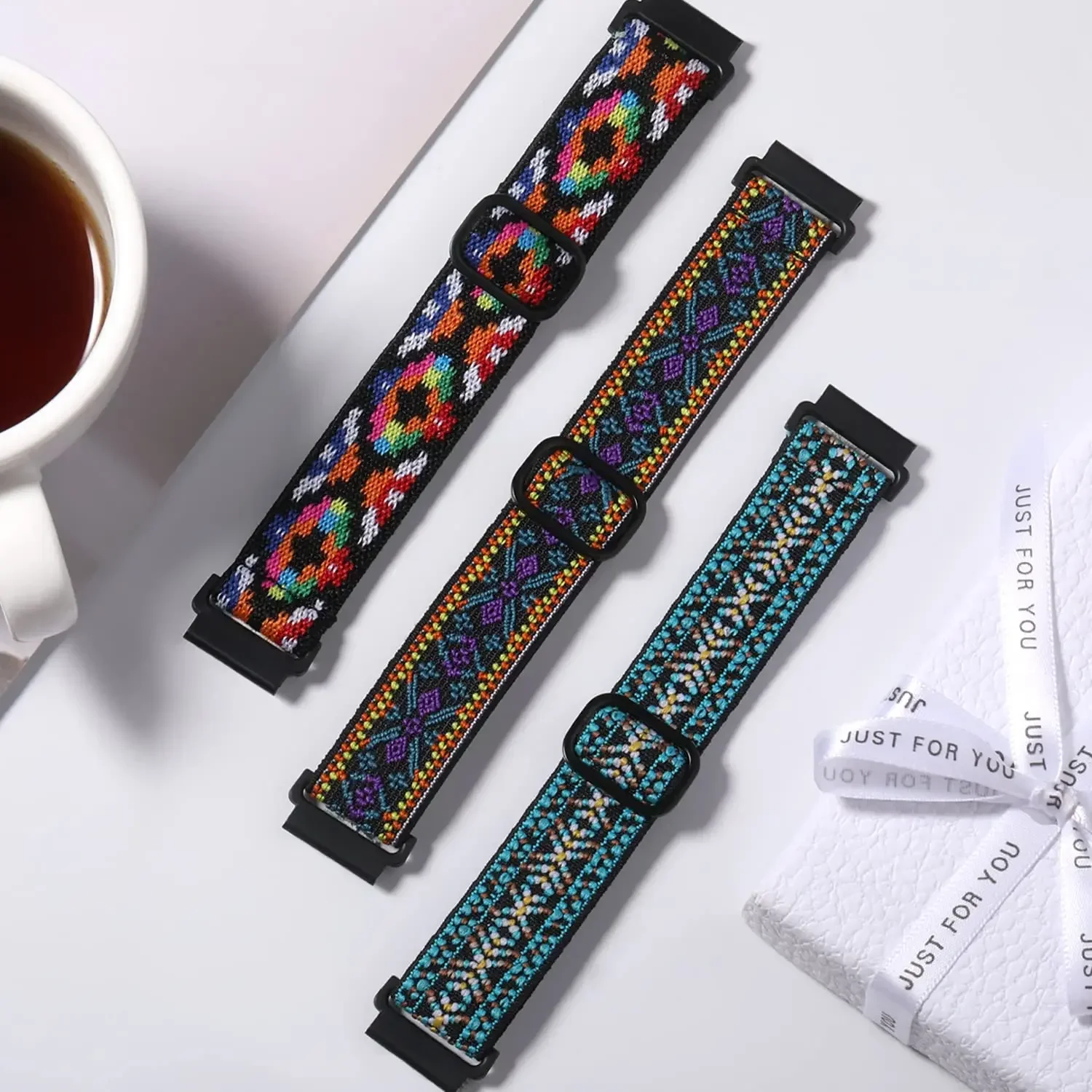 Material de nylon transpirable: el lazo de nylon está hecho de nylon transpirable, suave y flexible, fuerte y resistente, transpirable y fácil de limpiar, cómodo y no irrita la piel, no se frota en la muñeca. No deja marcas en la muñeca, aprieta más fácilmente la piel de la muñeca y controla tus registros de fitness.