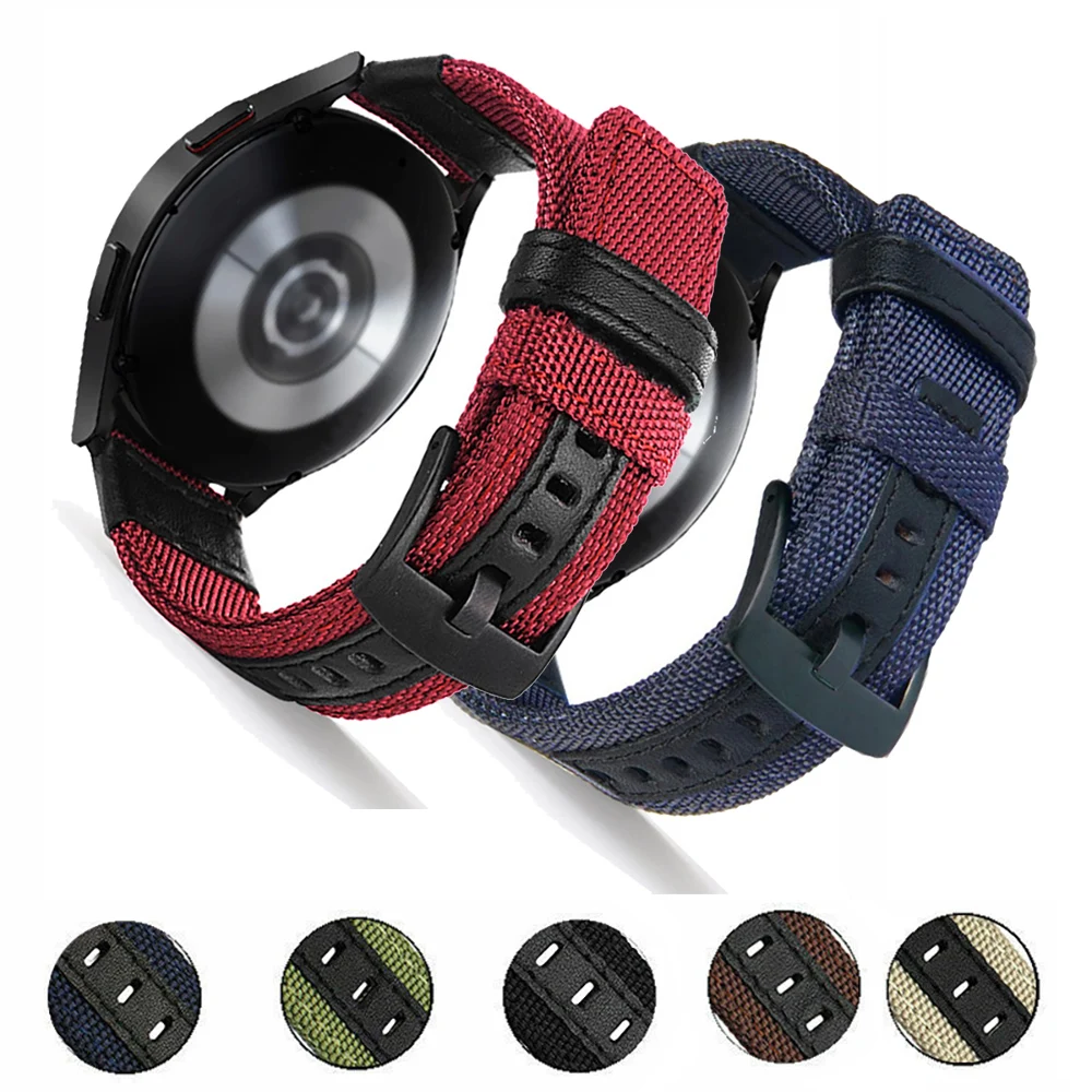 Correa de nailon de 20mm y 22mm para Samsung Galaxy watch 3 4 46mm gear s3 Frontier, correa de nailon tejida clásica para pulsera deportiva de 20mm y 22mm