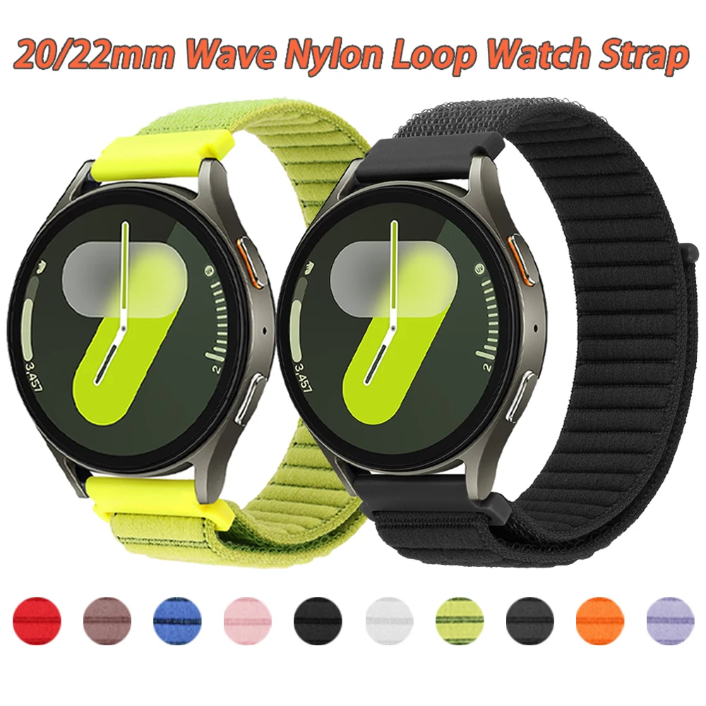 22/20mm Nylon Loop Strap For Samsung Galaxy watch 7/6/5/4/Active 2 40mm 44mm 5 Pro 4 6Classic Bracelet Watch 3 45mm Gear S3 Band
