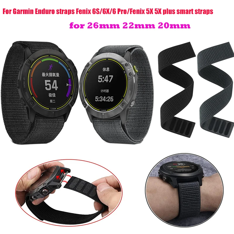 Correa de nailon con gancho de 26 22mm para reloj inteligente Garmin Enduro 2, pulsera Fenix 7 EPIX 7X Fenix 6X 6Pro 5X 5/MK2i/955 945