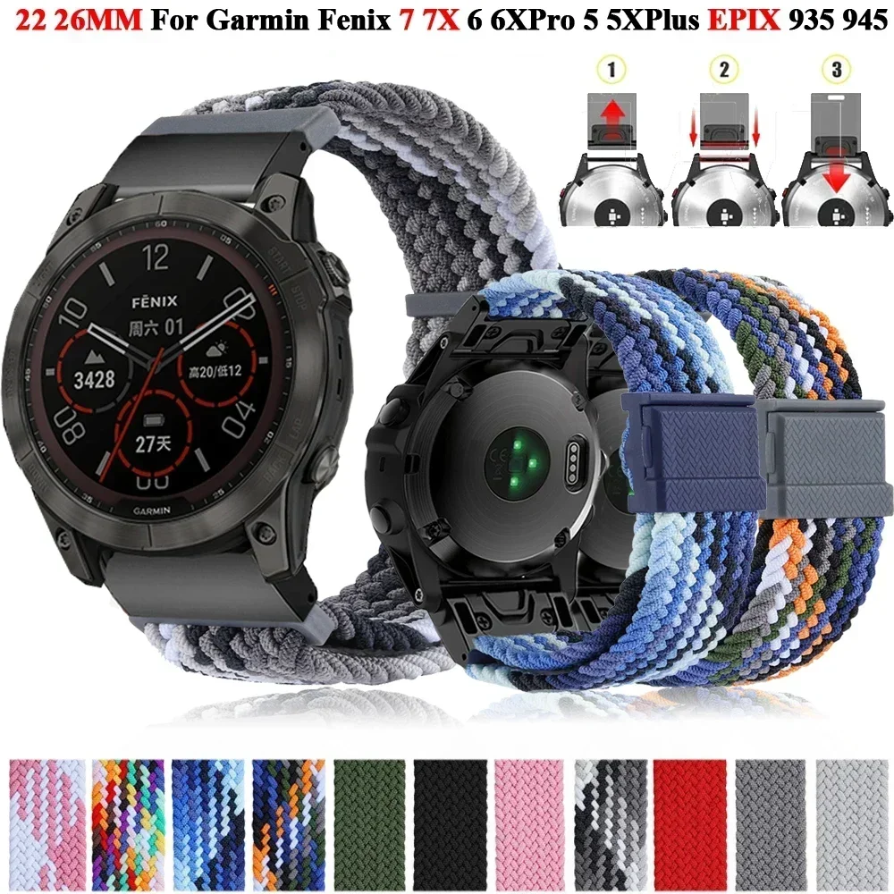 Correa de reloj de nailon QuickFit de 22 26 mm para Garmin Fenix 5 5X 6X 7 7X Pro/Epix Pro (Gen 2) 47 51 mm TACTIX 7 Pro/Enduro 2 Correas de muñeca