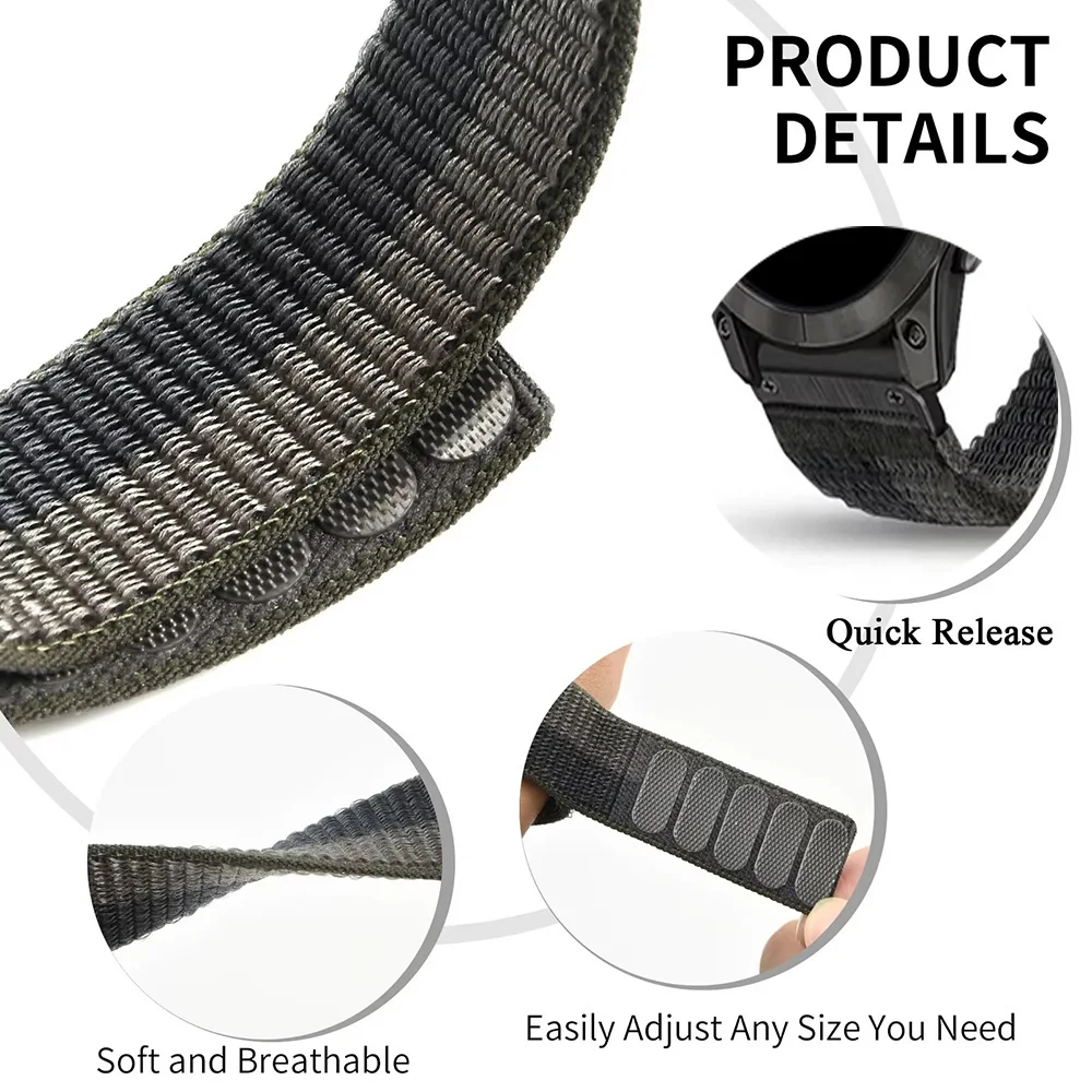 26 22mm Nylon Replacement Watch Band For Garmin Fenix 7 7X 6 6X Pro 5X 5 Plus Epix Gen2 Instinct 2 Hook and Loop Quick Dry Strap