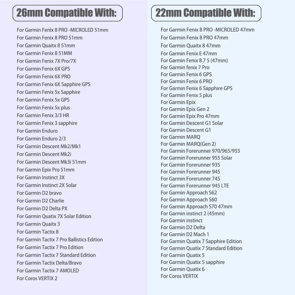 Correa de reloj QuickFit de nailon y silicona de 26mm y 22mm para Garmin Quatix 8 7X 7/Fenix 8 PRO 7 6X, pulsera Forerunner 970 965 745
