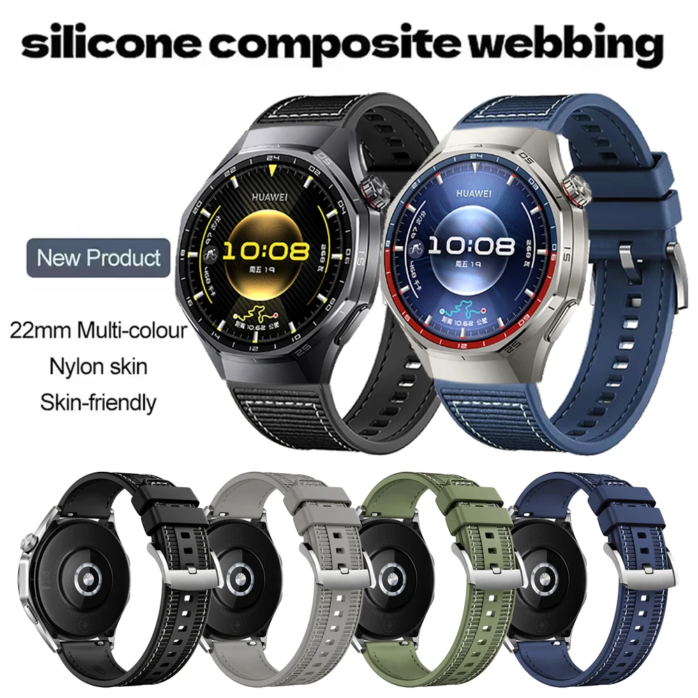 Correa oficial de nailon compuesto de 22mm para HUAWEI WATCH GT 6 5 4 46mm/Watch 5 Pro GT 3 2 Pro Sport pulsera suave de silicona