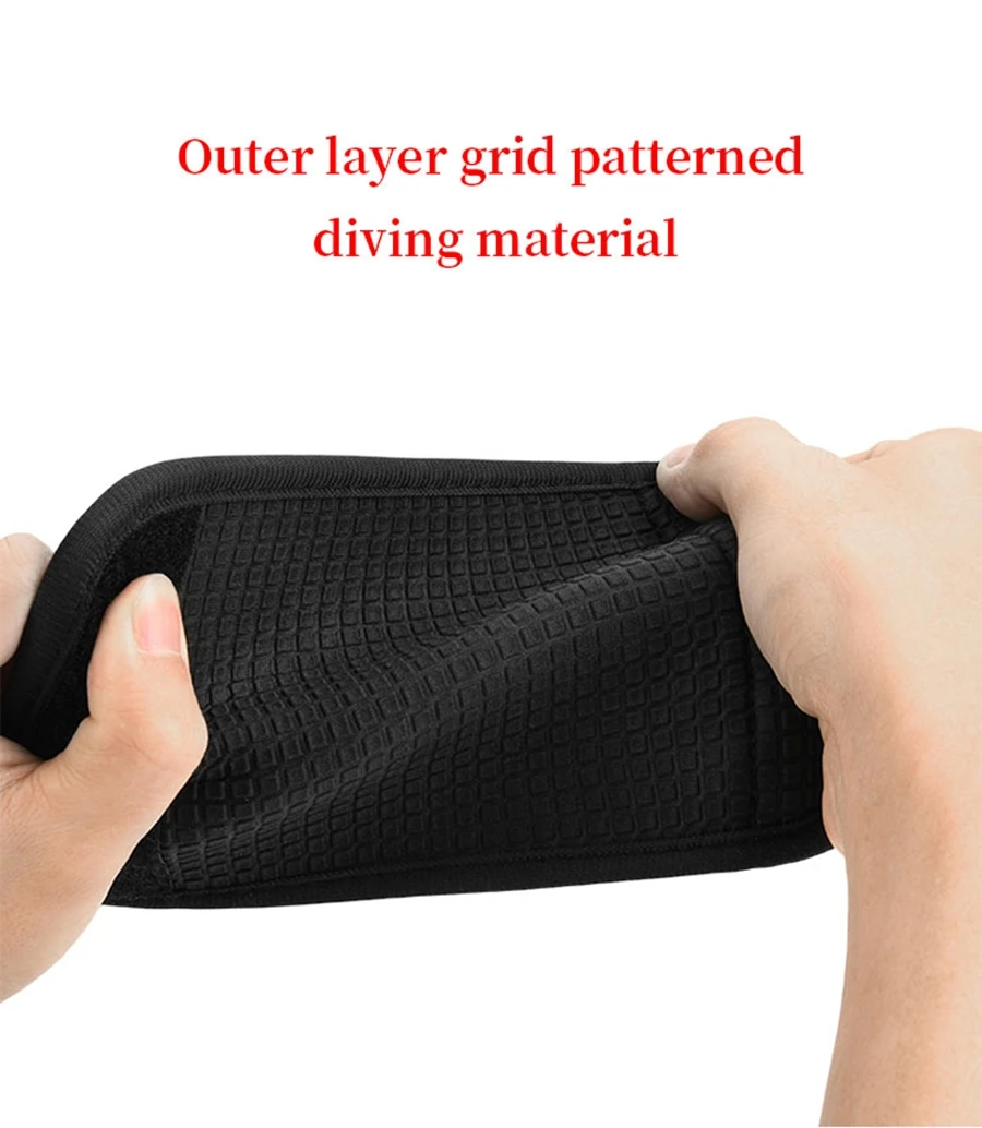 Feature: Using diving material and surface small grid embossed grip, with anti slip treatment by drip glue, neat edge wrapping and closure; The method of using hook and loop adhesive is convenient to use and can be repeatedly bonded for a long time, making it more durable.