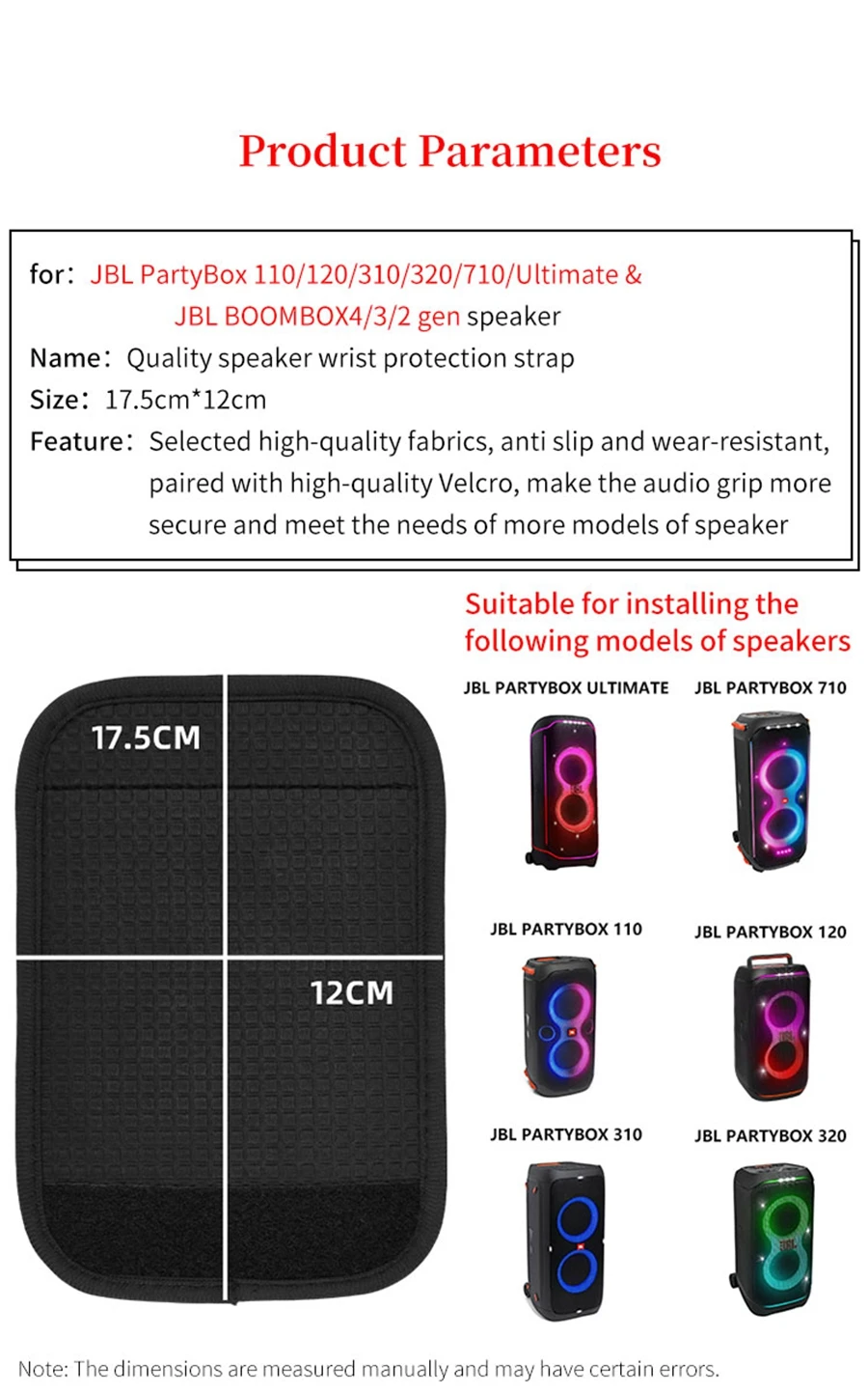 for: JBL PartyBox 110/120/310/320/710/Ultimate & JBL BOOMBOX4/3/2/1 Speaker Wrist Protection Strap