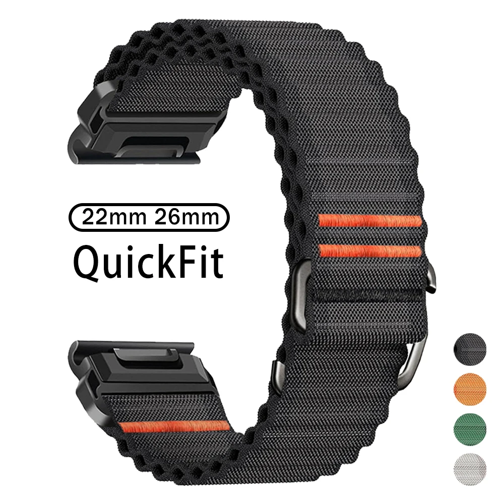 Correa de nailon QuickFit de 22mm y 26mm para Garmin Fenix 8 E 7X 7 Pro 6X 6 5X 5 Tactix 8 Forerunner 970 Enduro 3 Epix Pro Descent G2 Band