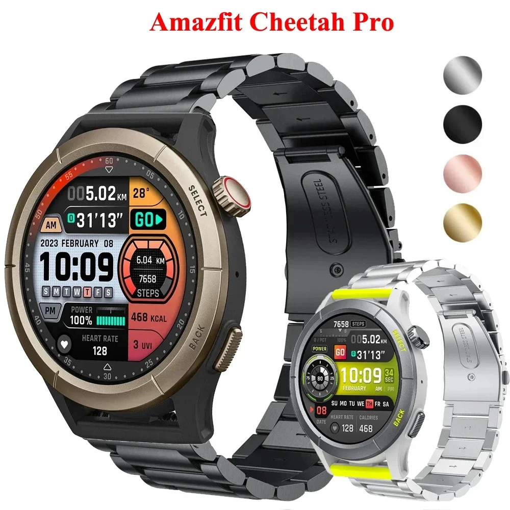 Comprar Correa de reloj de 22mm para Amazfit Cheetah Pro/reloj inteligente redondo de acero inoxidable para Amazfit Balance 2/GTR 4 3 2 Bip 6 5