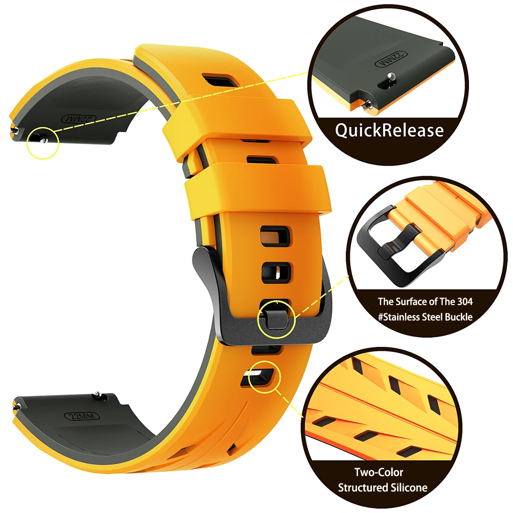 Correa de reloj inteligente de silicona de dos tonos de liberación rápida de 22mm para Huawei GT/Amazfit/Xiaomi S4/Honor/Suunto RACE 2 S pulsera deportiva