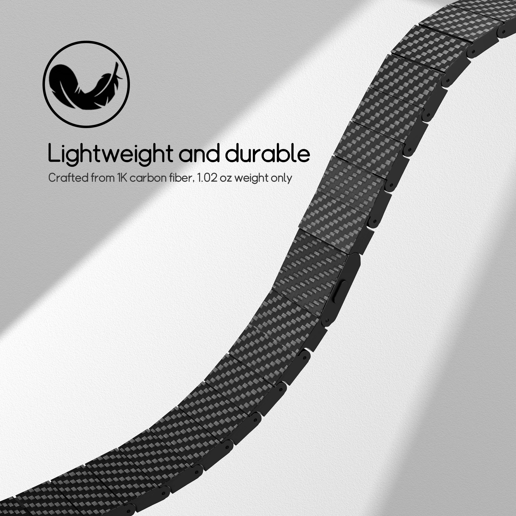 【Diseño más seguro actualizado】La hebilla magnética dual puede bloquear la correa de manera fácil y segura, protegiendo así su reloj de manera más segura.Al elegir 100% fibra de carbono, el peso no supone ninguna carga para la muñeca.