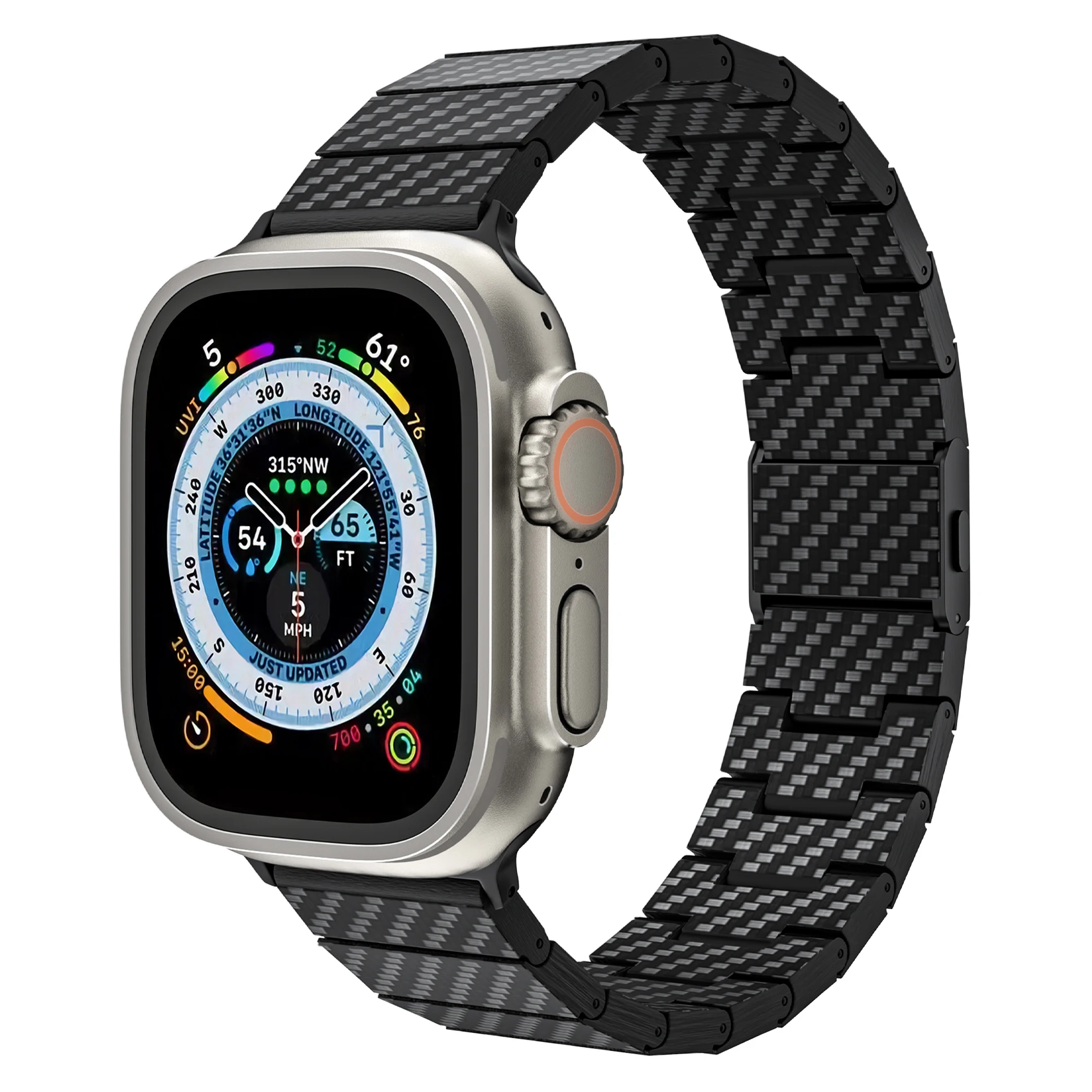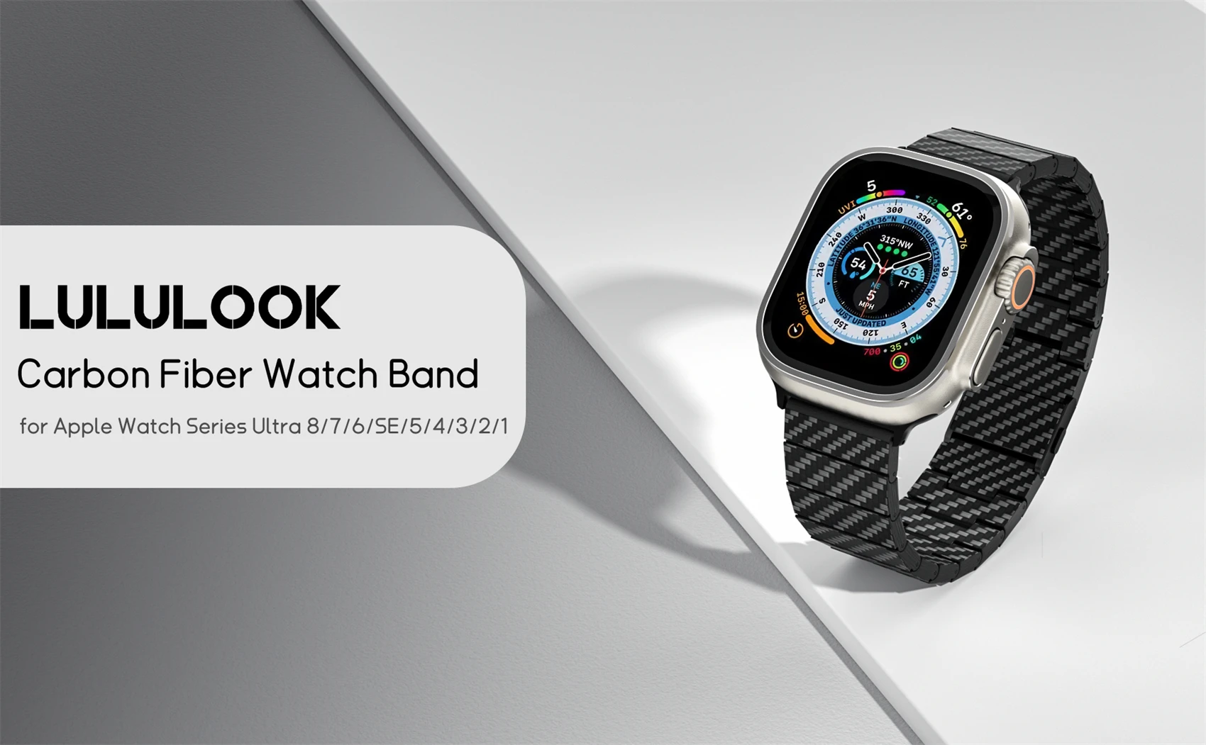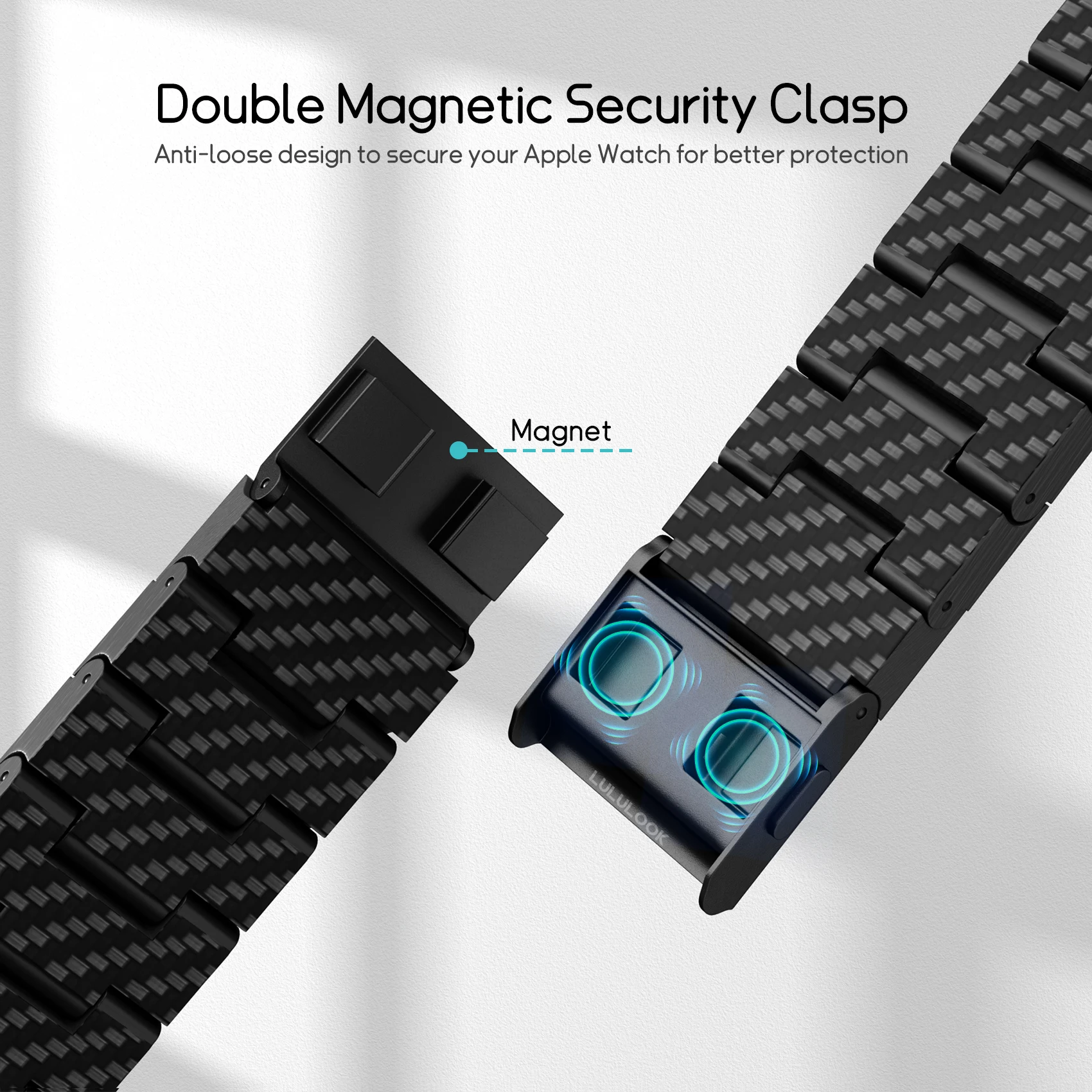 Correa de reloj LULULOOK para Apple Watch 11/10/9/8/7/6/SE/5/4/3/2/1/Ultra 3/Ultra/Ultra 2 49/46/45/44/42/41/40/38 mm. Correa de fibra de carbono con Doble cierre magnético
