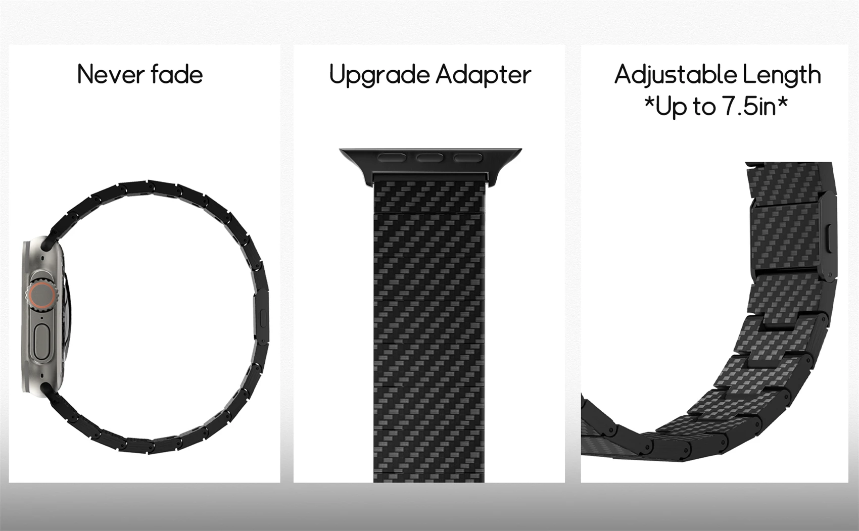 【Lo que obtendrá】Banda de fibra de carbono*1, herramienta de desmontaje gratuita*1, pasadores de banda reemplazables*3. Si encuentra algún problema con el producto después de recibir la correa, contáctenos de inmediato y le daremos la mejor solución.