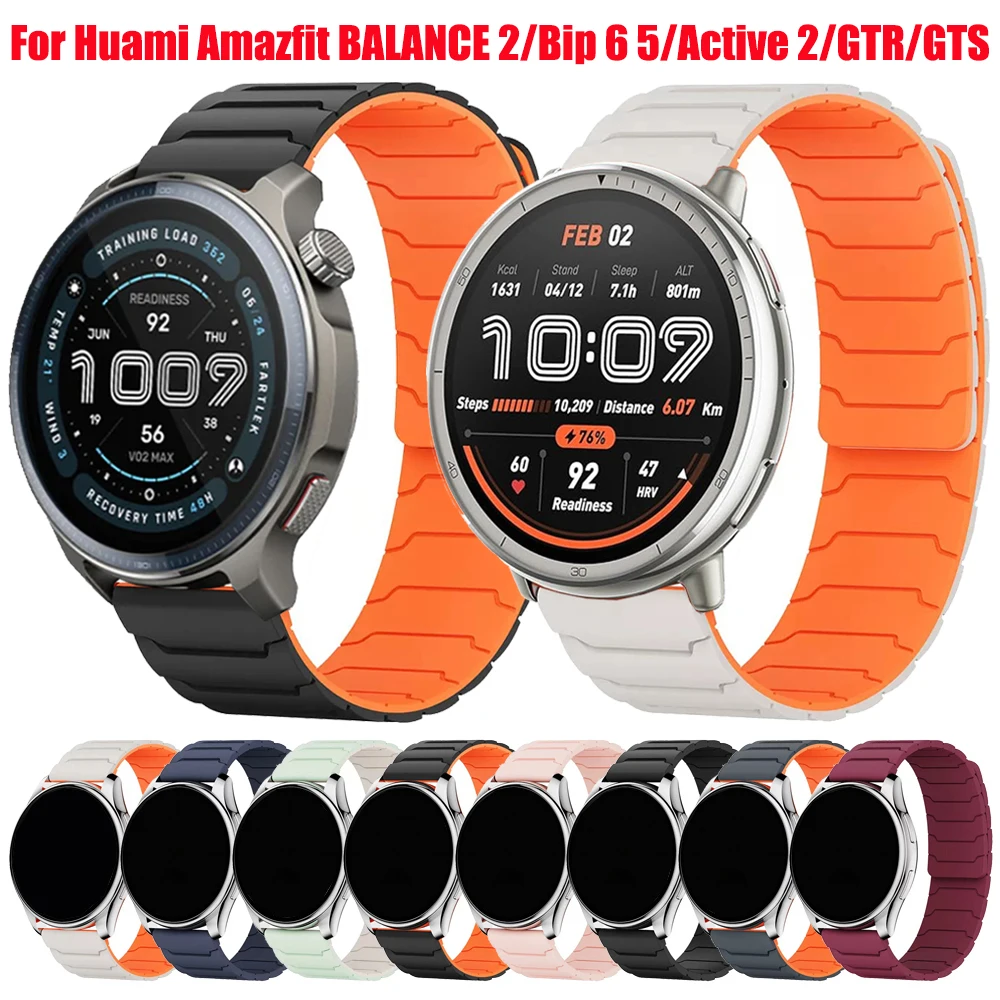 Correa de reloj magnética de 20 22mm para Amazfit Balance 2/Active 2/GTS4 2 Mini/GTR4 3 Pro, pulsera de silicona Amazfit bip6 Bip U Pro