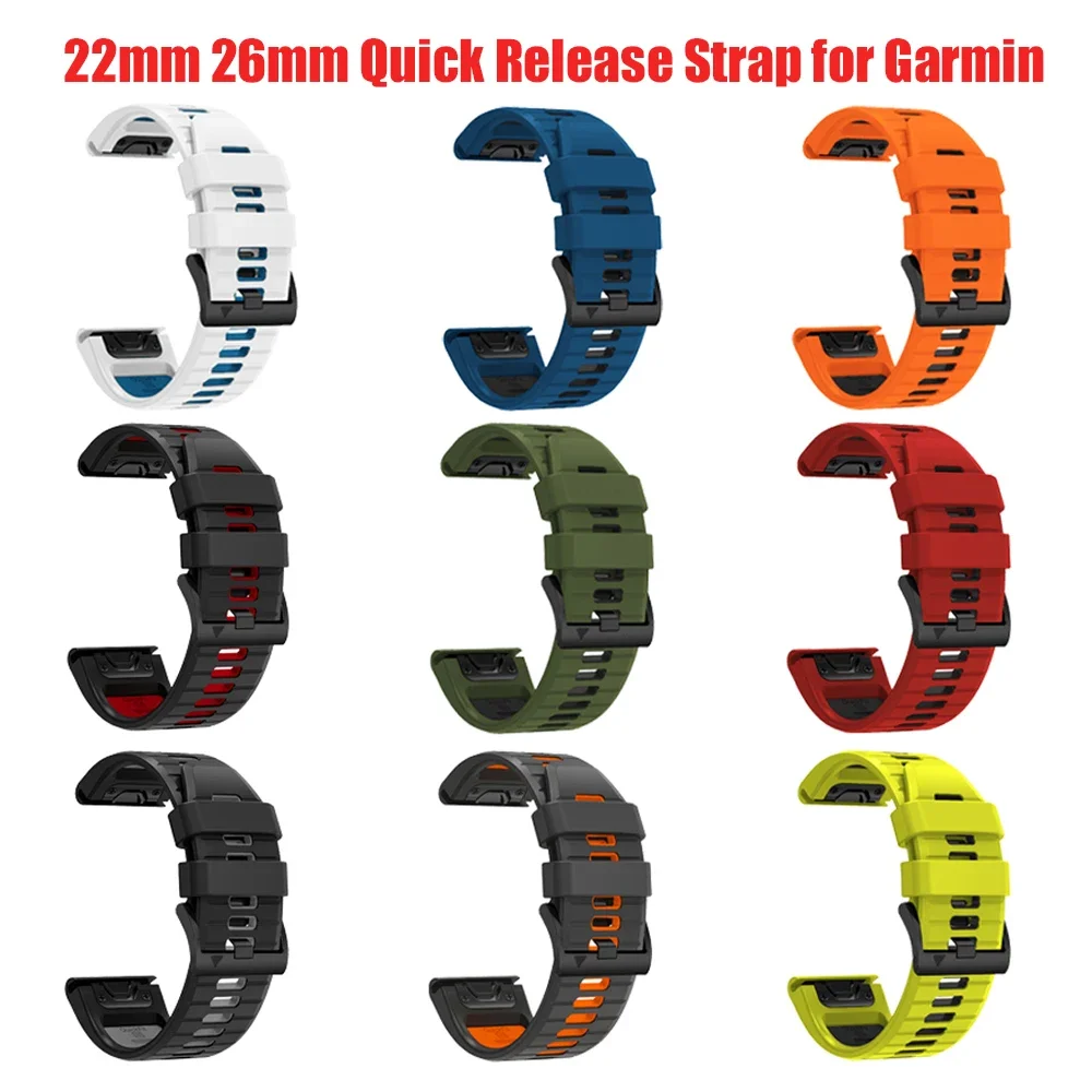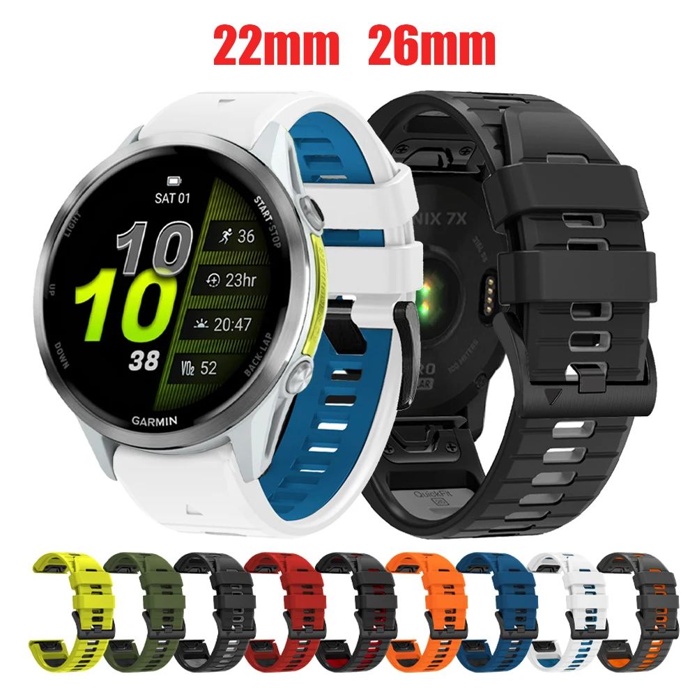 Comprar Correa de reloj oficial de dos tonos de 22mm y 26mm para Garmin Fenix E 8 7 7X 6 5plus /Forerunner 970 965, pulsera de silicona QuickFit