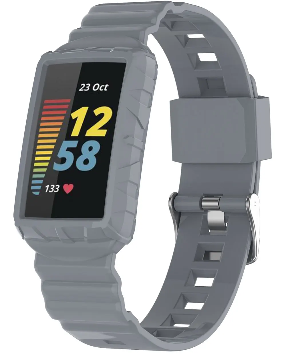 Correa de silicona 2 en 1 + funda para Fitbit Charge 6 5 4 3, pulsera de reloj inteligente, funda protectora completa, correa de muñeca