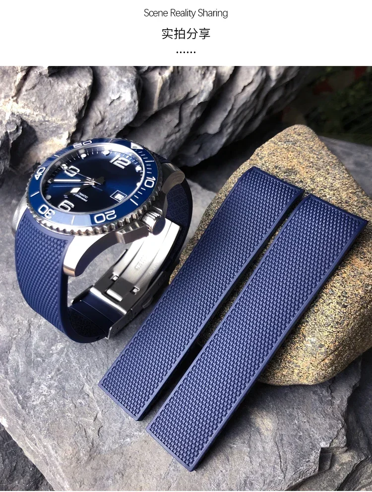 Correa de reloj de silicona de 21mm, correa de reloj resistente al agua para correa Longines para serie Conquest HydroConquest L3.742 782