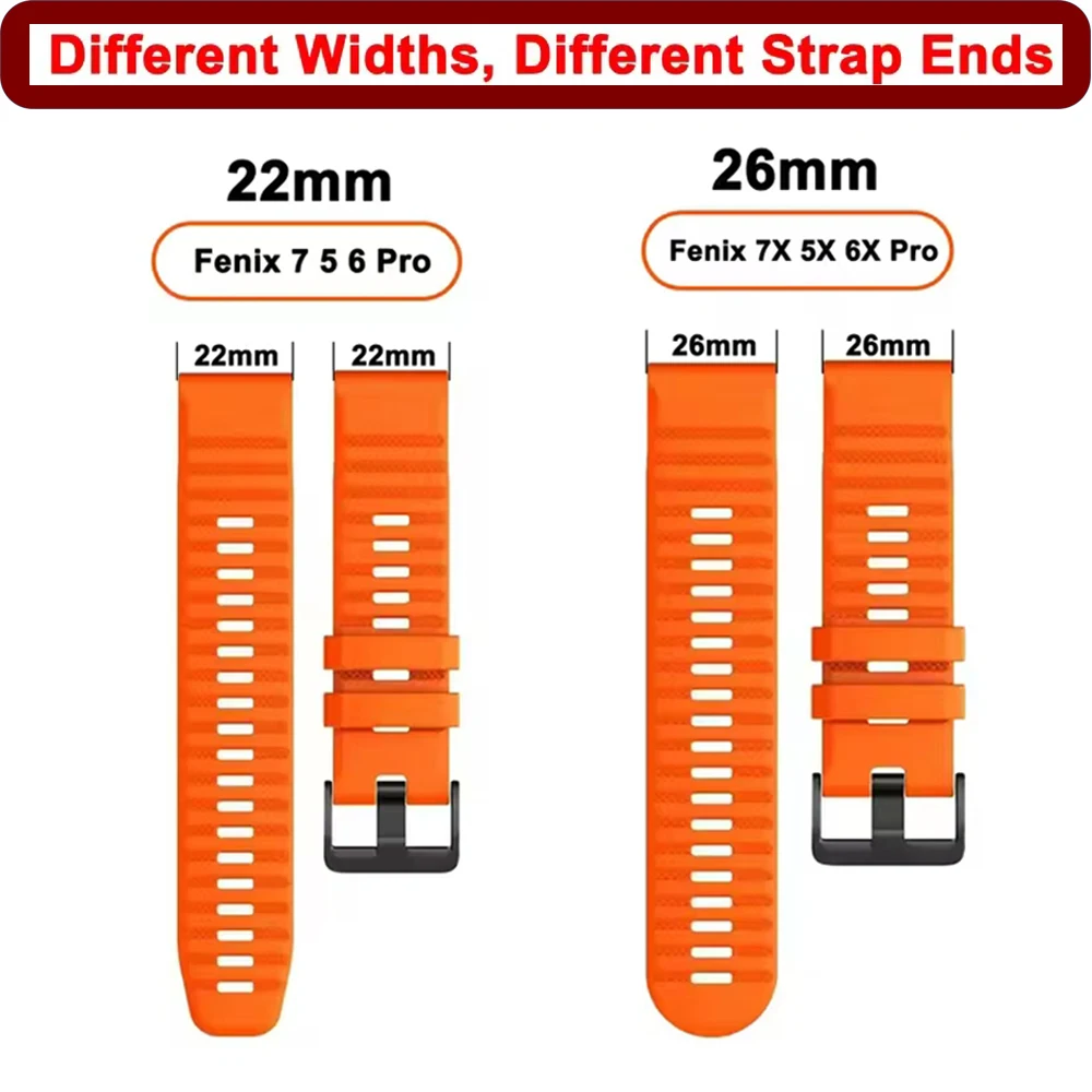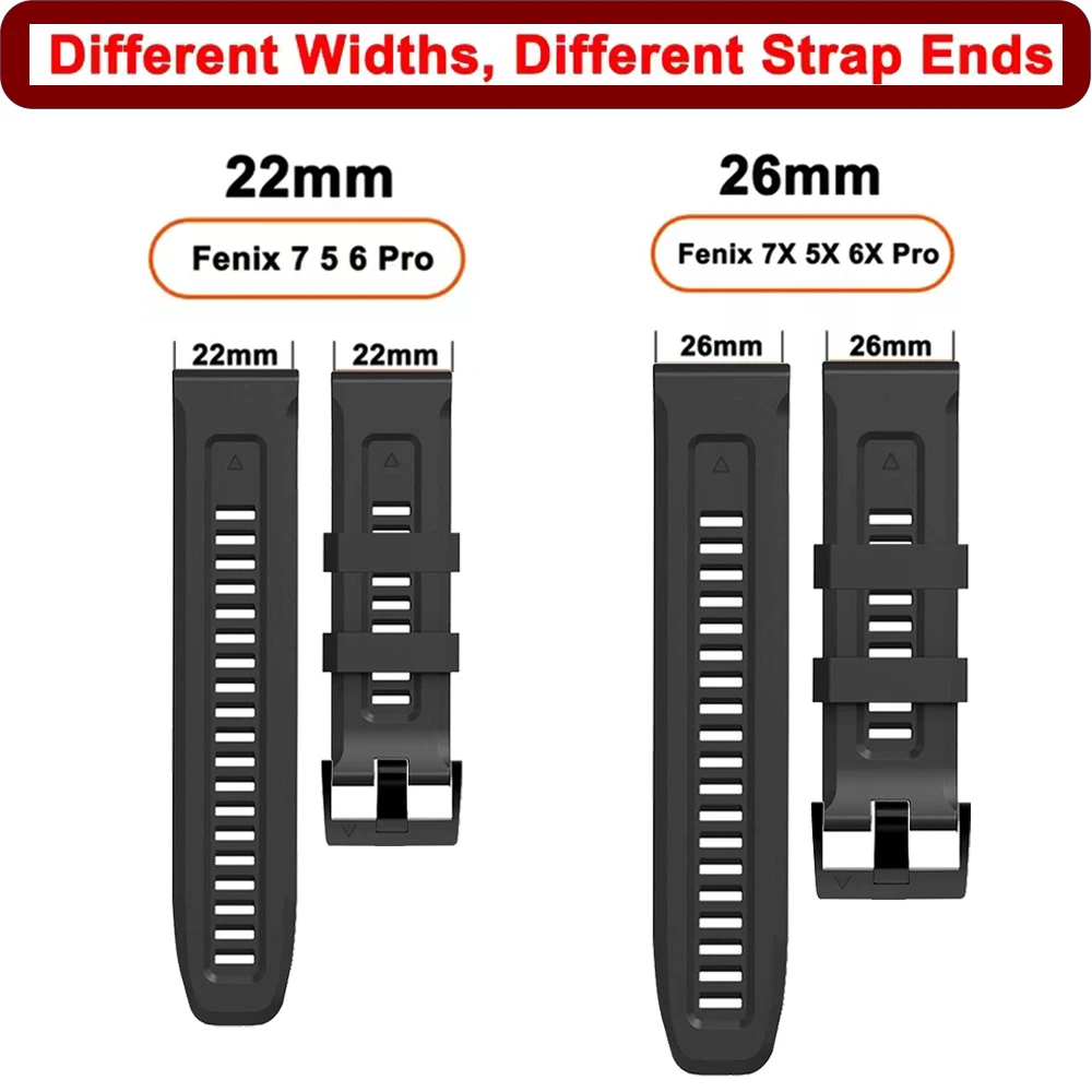 Correa de reloj de silicona QuickFit de 22mm y 26mm para pulsera Garmin fenix 8 pro 5X 5 Plus E 7 7X Epix Descent G2 Tactix 8 Forerunner 970