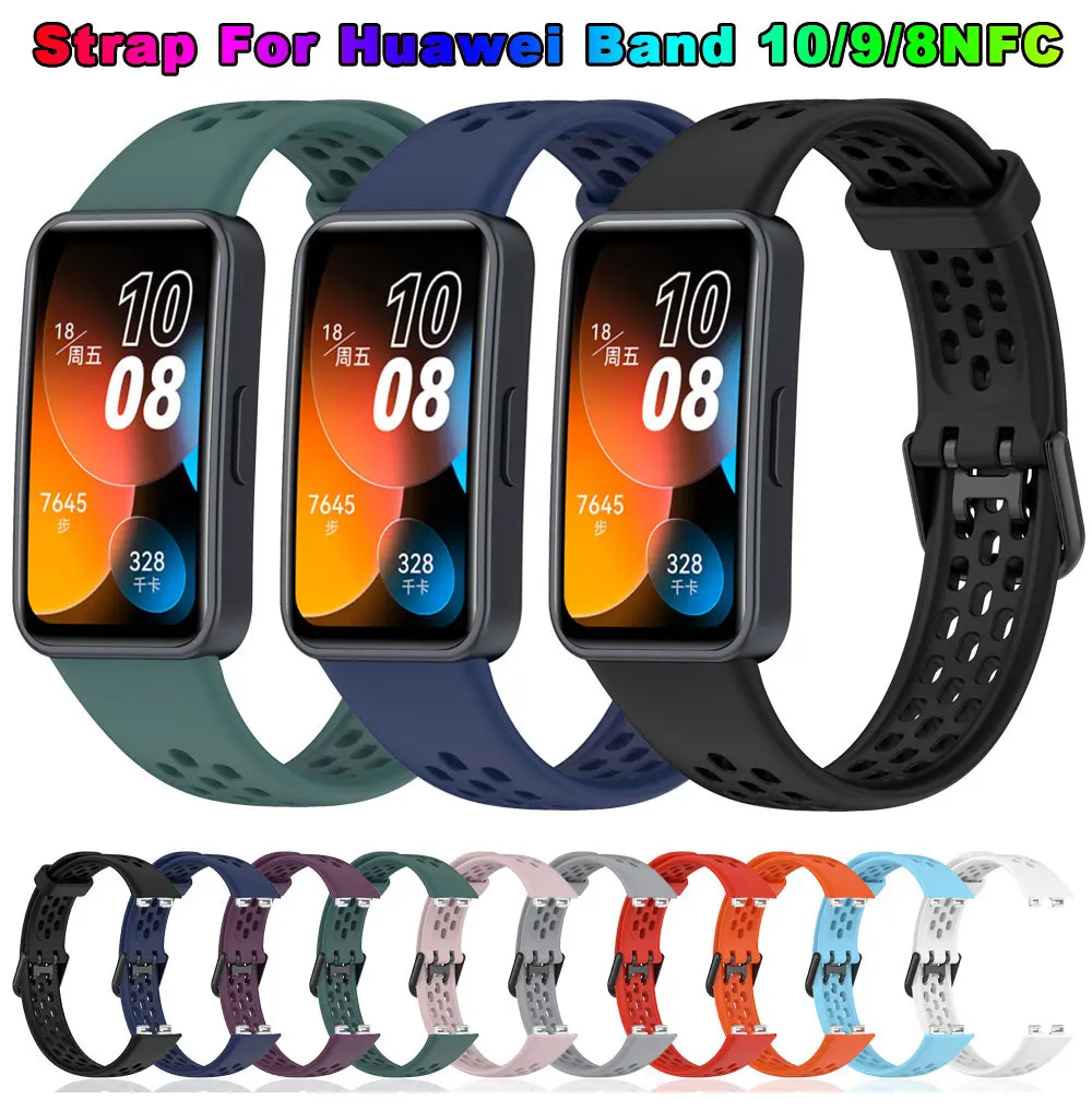 Correa de reloj transpirable de silicona para Huawei Band 10 9 8 NFC Correa accesorio inteligente pulsera deportiva de repuesto correas Huawei Band 10
