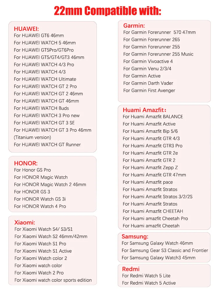 Este producto viene en un tamaño: 22 mm.Si no estás seguro del tamaño del reloj, puedes elegir el tamaño según los siguientes modelos.
