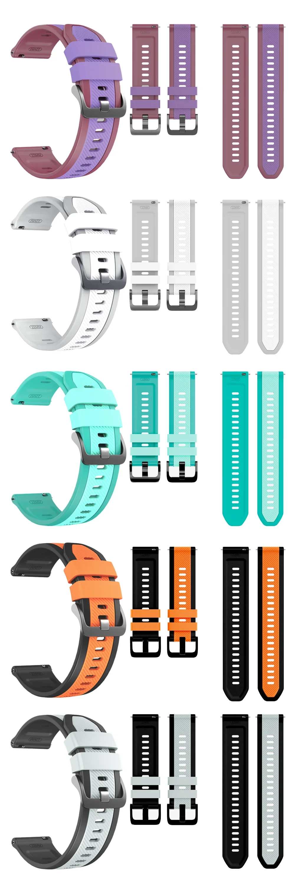 Correa de silicona de 22mm para Samsung Galaxy Gear S3 Classic/Watch 3 45mm banda de goma para HUAWEI Watch GT6 pro/GT6 5 4 3 46mm pulsera