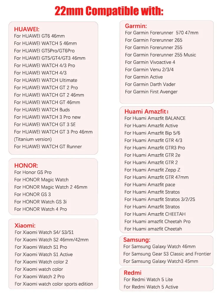 Este producto viene en un tamaño: 22 mm.Si no estás seguro del tamaño del reloj, puedes elegir el tamaño según los siguientes modelos.