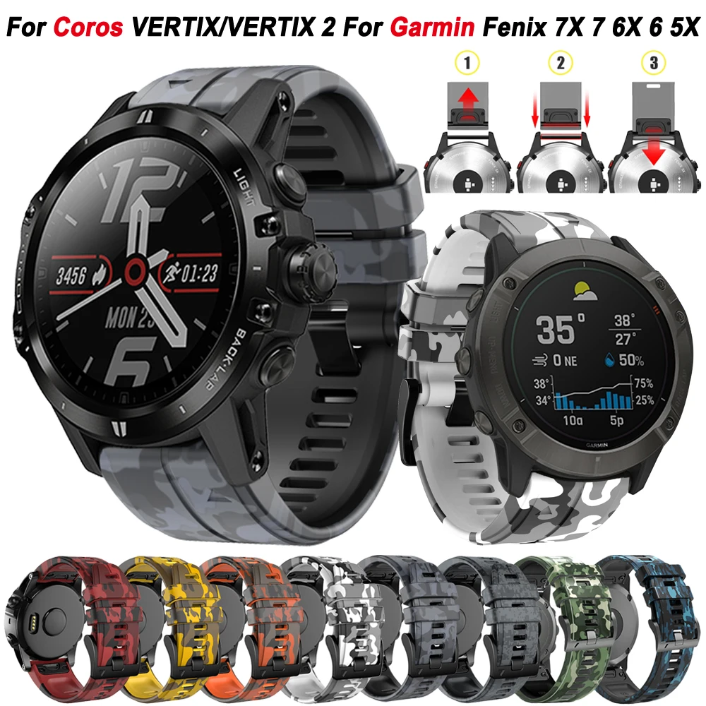 Correa de reloj de silicona de camuflaje para pulsera COROS Vertix 2 para Garmin Fenix 6X 6Pro 5X Plus 7X 3 HR Epix 26 22mm Correa de ajuste rápido