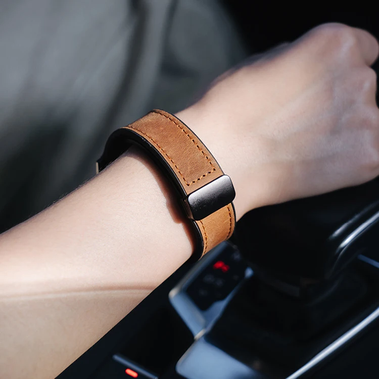 No está mal la pulsera. Por fuera parece de cuero, pero por dentro es de silicona. La muñeca suda.