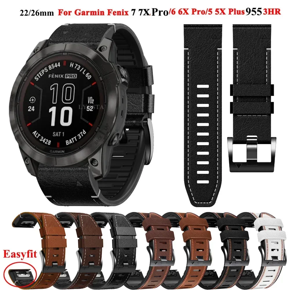 Correa de reloj de silicona de cuero de 22mm y 26mm para reloj inteligente Garmin Epix Gen 2 Fenix 5X 5 Plus 6X 6 Pro 7 33HR pulsera de repuesto