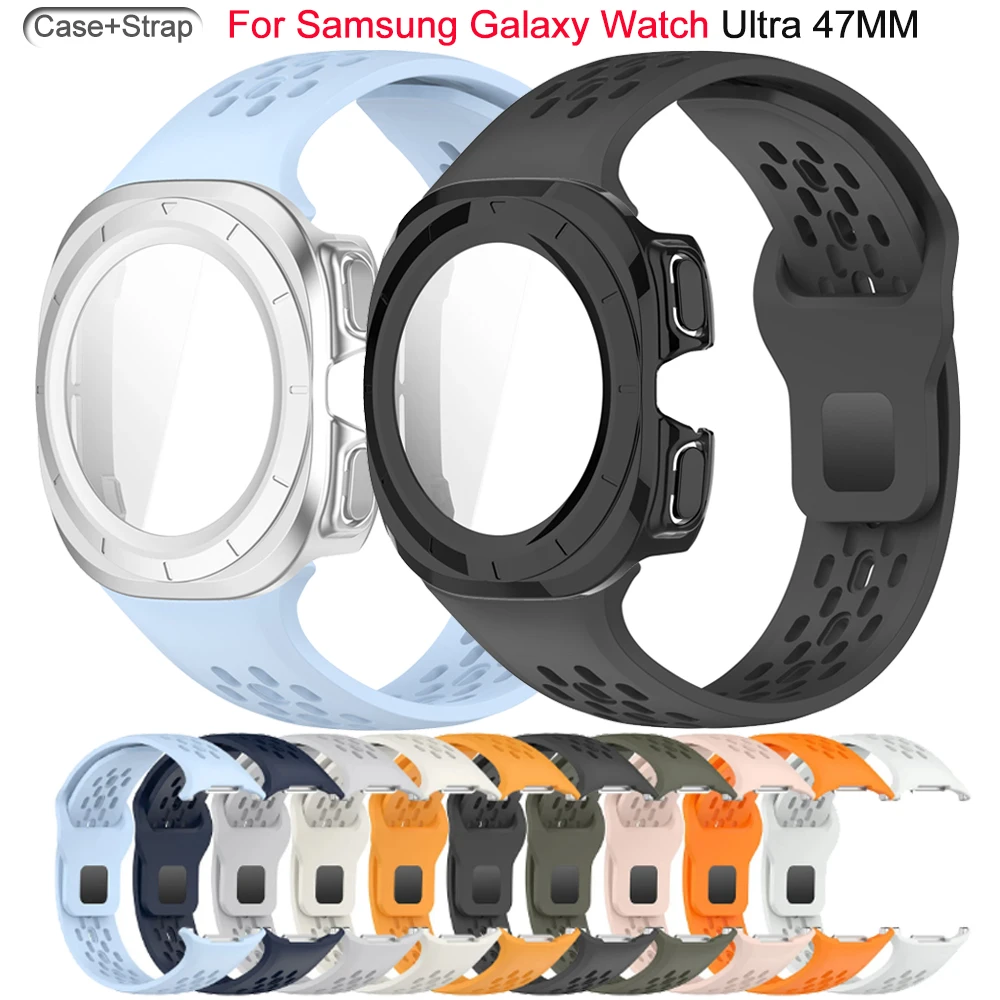 Comprar Correa de silicona + funda para Samsung Galaxy Watch Ultra 47mm pulsera deportiva Galaxy Watch correa de cubierta de vidrio Ultra templado