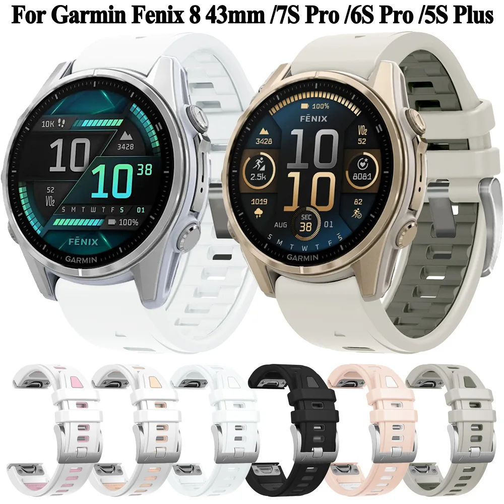 Correa de reloj de silicona con hebilla plateada de 20mm para Garmin Fenix 8 43MM, pulsera para Fenix 7S 7SPro 6S Pro 5S Plus Correa