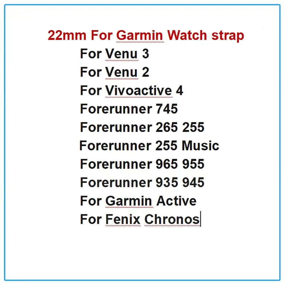 Correa de reloj deportiva de silicona de 22mm para Garmin Forerunner 265 Forerunner 255 Forerunner 745 Venu 3 Venu 2, pulsera de correas de muñeca