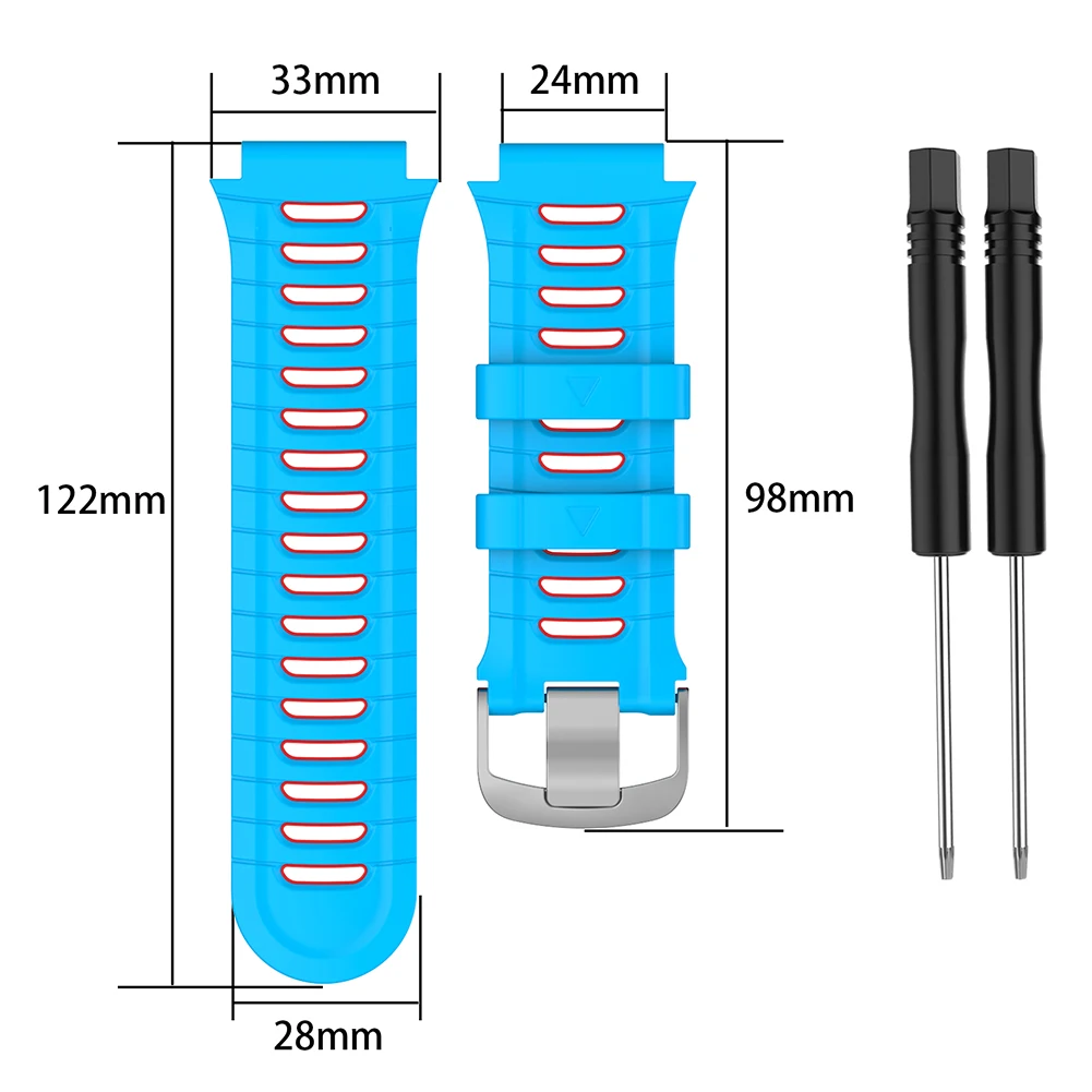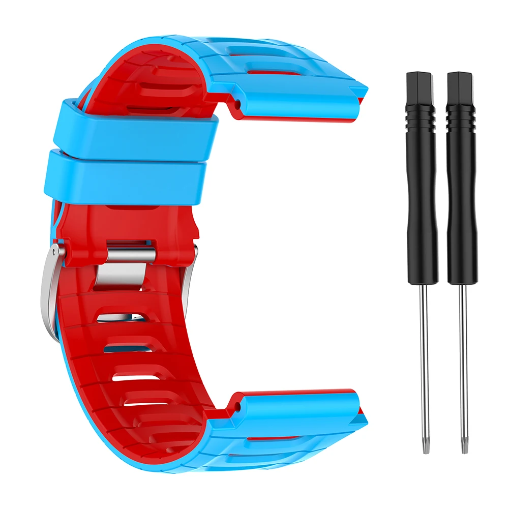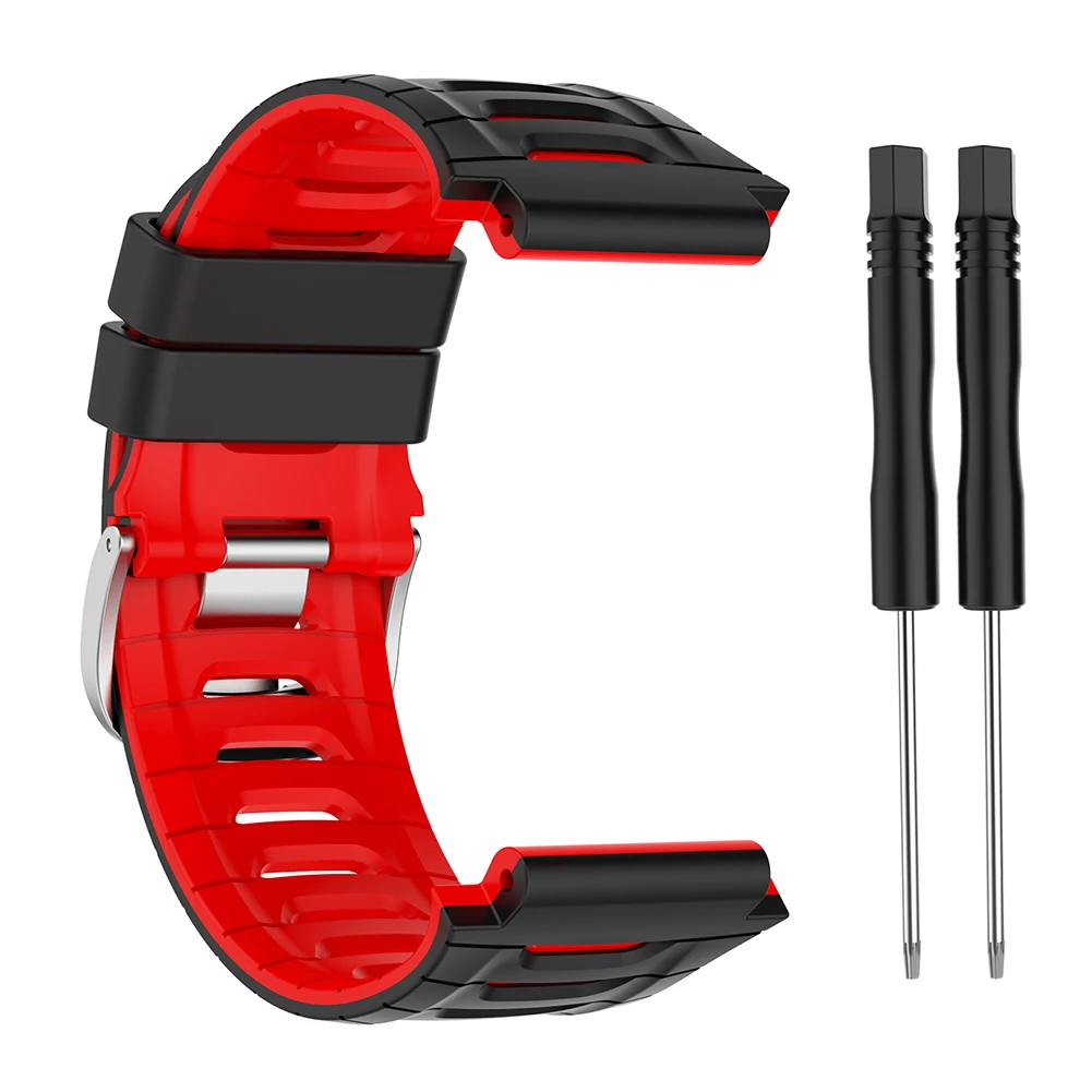 Correa de silicona suave pulsera ajustable correa de reloj deportivo inteligente accesorios de pulsera cómodos para Garmin Forerunner 920XT Característica: 1. Diseñado para el reloj inteligente Garmin Forerunner 920XT. 2. Silicona de calidad alimentaria, respetuosa con el medio ambiente, suave y cómoda de llevar. 3. Con un juego de herramientas de extracción, fácil de reemplazar la correa. 4. Sándwich de dos colores nuevo, moderno y novedoso. 5. 5. Hebilla con hebilla de acero de alta calidad, buena textura, ambiente.