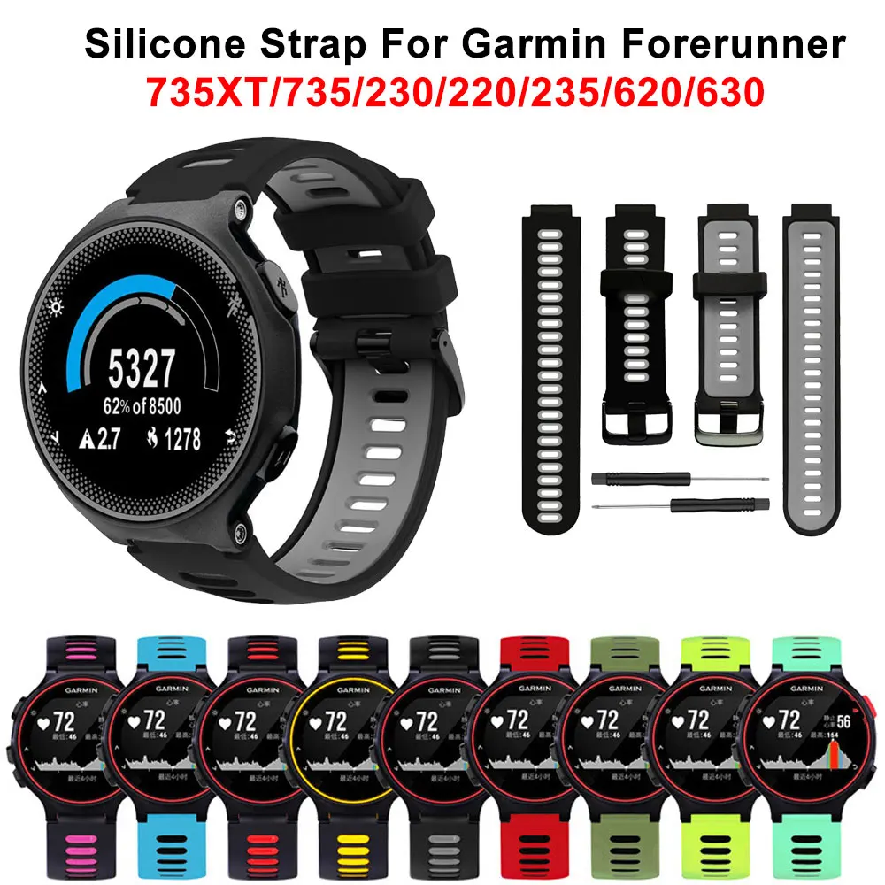 Comprar Correa de silicona para reloj inteligente, pulsera de repuesto para Garmin Forerunner 735XT, Forerunner 220/230/235/620/630