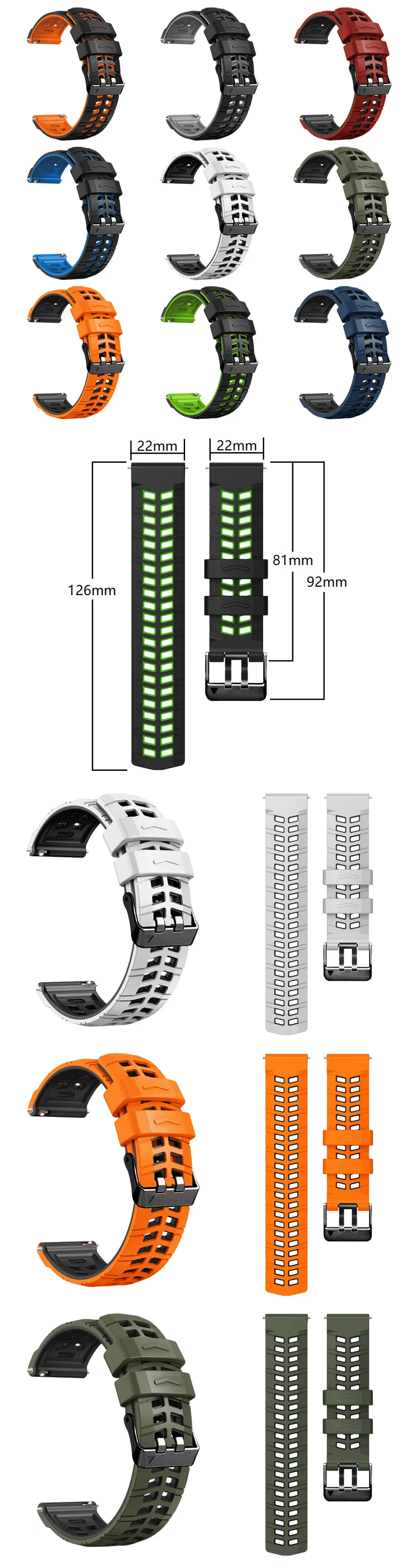 Correa de reloj de silicona de repuesto de 22mm para Huawei Watch GT4/GT3 SE/Pro/2E/GT2, pulsera GT 4 3 2 GT3 Pro 46mmPluma:Ancho de banda: 22 mm*Material: Hecho de silicona de alta calidad, saludable y respetuoso con el medio ambiente.*hebilla: acero inoxidable 316L* Moldeo por compresión, resistente y duradero.*Material: silicona*La suavidad es moderada, muy cómoda de llevar.*Fácil de ajustar la longitud para adaptarse a tu muñeca***Debido a las diferentes pantallas y luces, es posible que la imagen no refleje el color real del artículo.Gracias por su comprensión.Y otros relojes tradicionales o inteligentes con un ancho de asa estándar de "22 mm".Qué hay en el paquete:1 x correa deportiva (el reloj inteligente NO está incluido)
