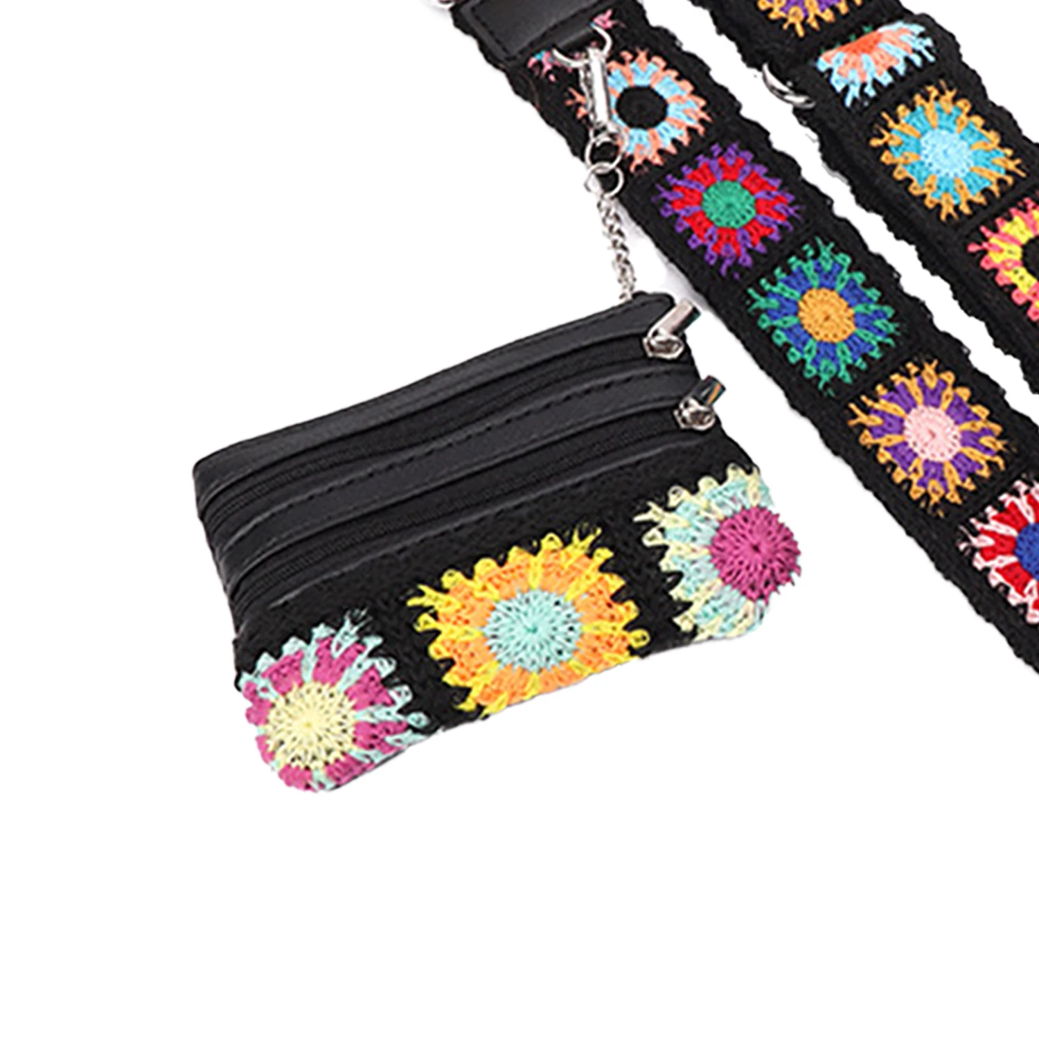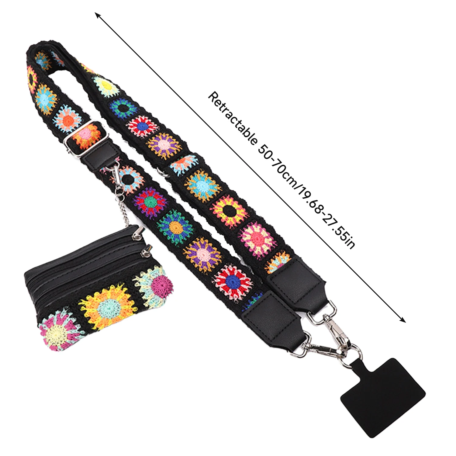 Comprar Correa de teléfono con patrón de tejido con billetera para mujer, cordón cruzado ajustable para teléfono móvil con bolsa con cremallera, correa de Clip y Go