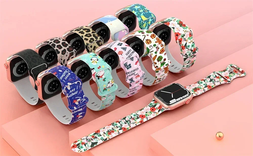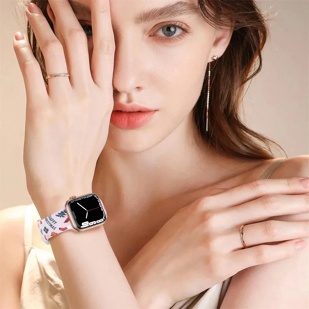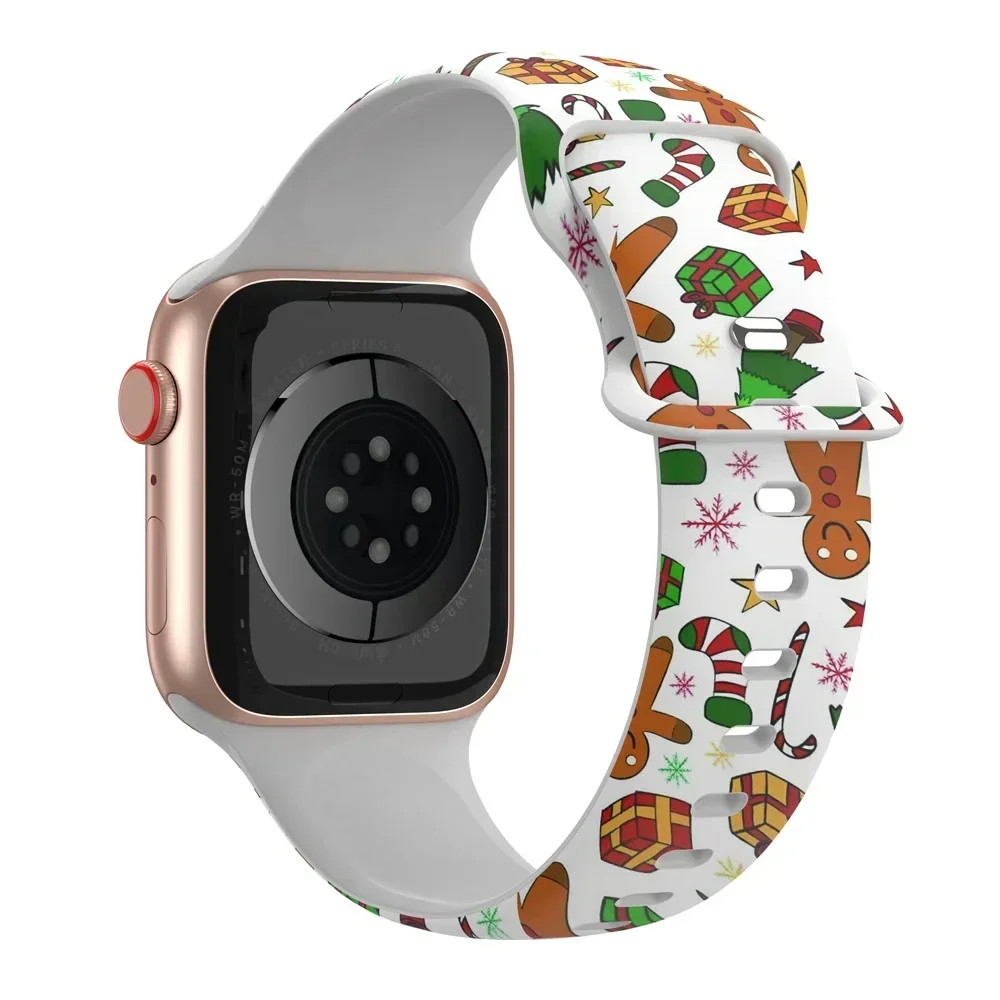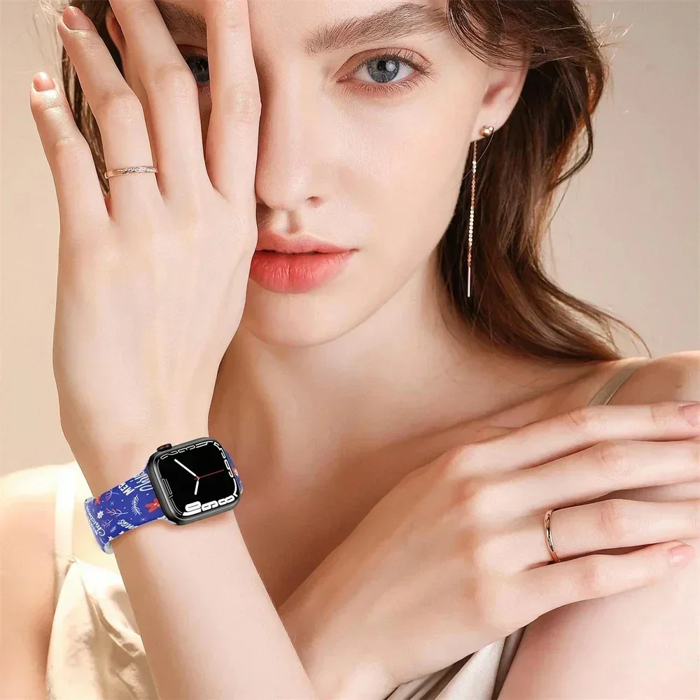 Correa de silicona navideña para Apple Watch Ultra 49mm 41mm 45mm 44mm 40mm Correa 38/42mm pulsera impresa iwatch Band Serie 3 4 5 6 7 8 Se