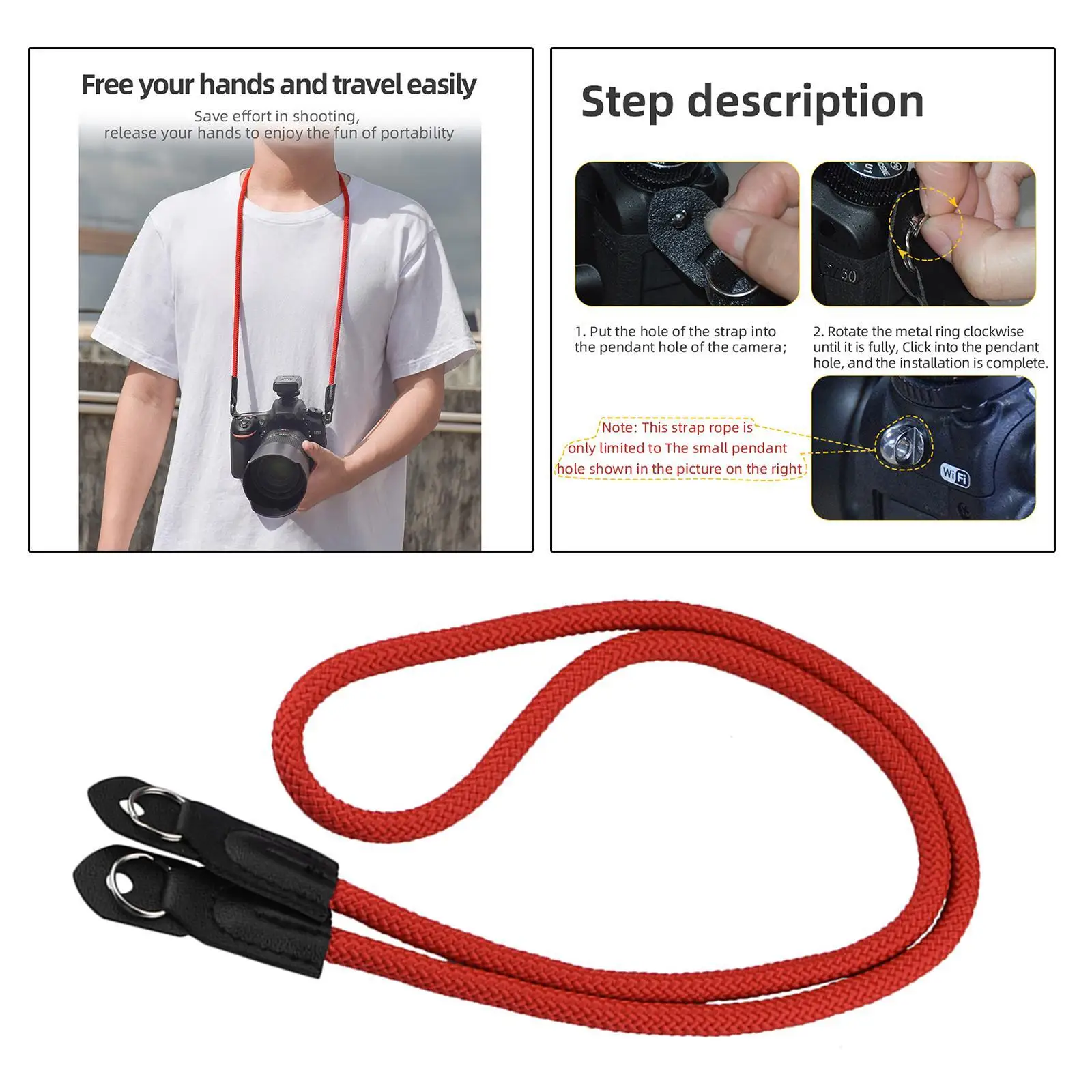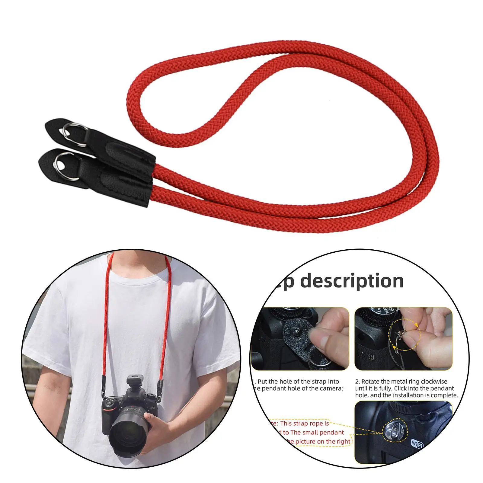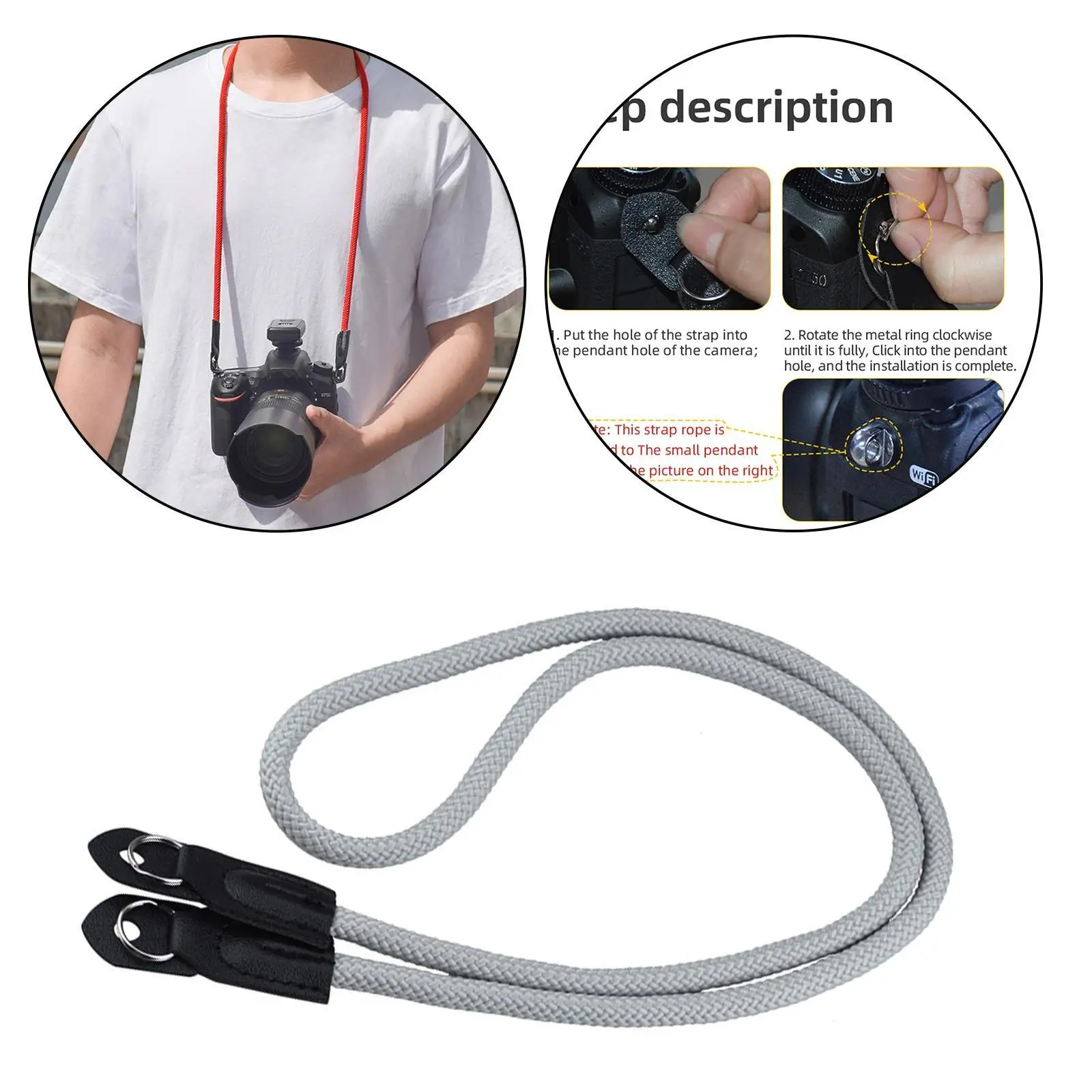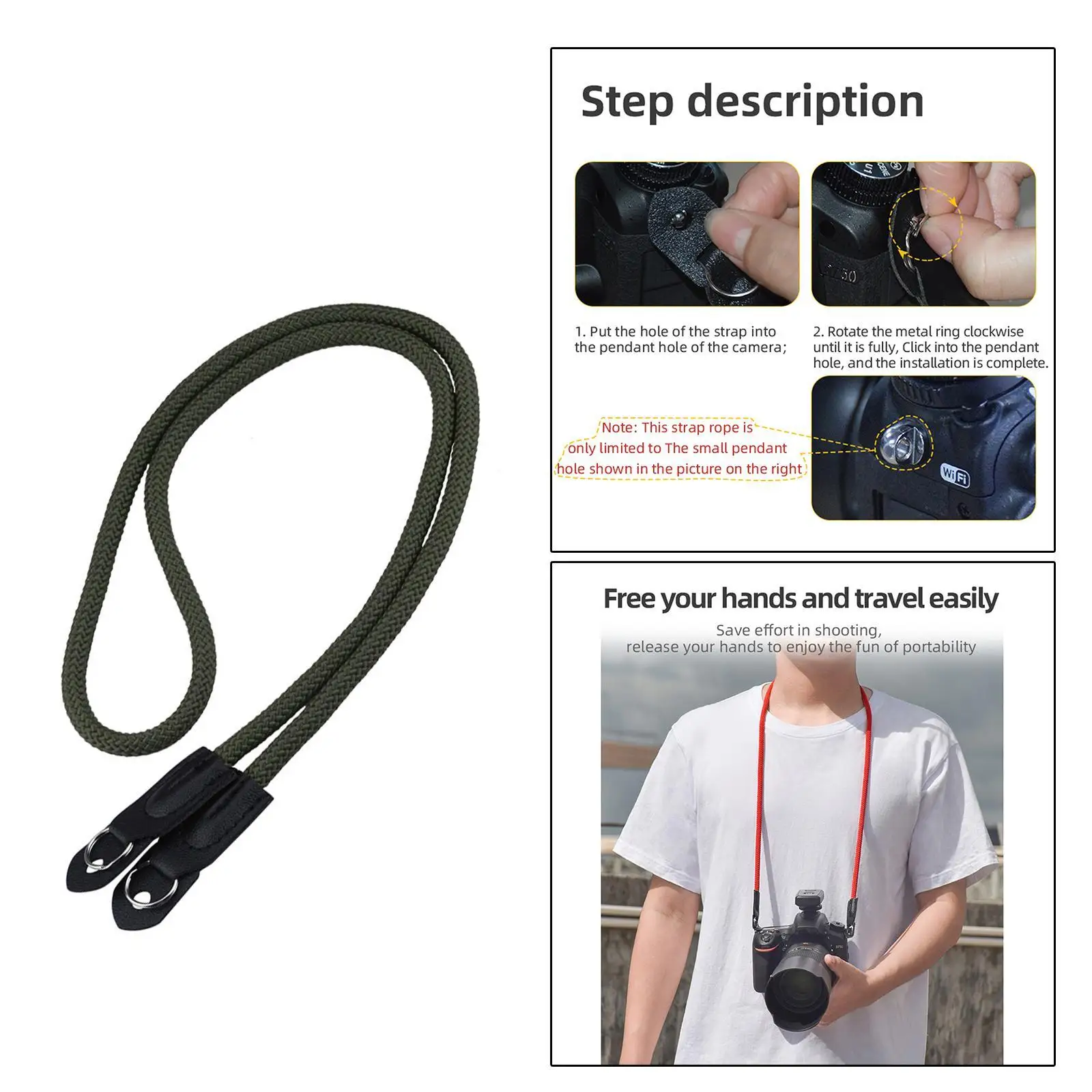 Descripción: Esta gran correa de la cámara es amde cuerda de escalada de nylon con un diámetro de 9mm y una longitud de 100cm, flexible y duradera. Colgado sobre el hombro, alrededor del cuello o simplemente la cámara alrededor de la muñeca. Fácil de instalar, la correa de transporte se puede utilizar para colgar cámaras retro o micro cámaras individuales. Esta correa de cámara es adecuada para mujeres y hombres. Simple, elegante y elegante, regalo perfecto para tus amigos que aman tomar fotos. Tabla de tallas: Longitud: aprox. 100cm/39,37 pulgadas Diámetro: aprox. 9mm/0,35 pulgadas El paquete incluye 1 pieza de correa para cámara