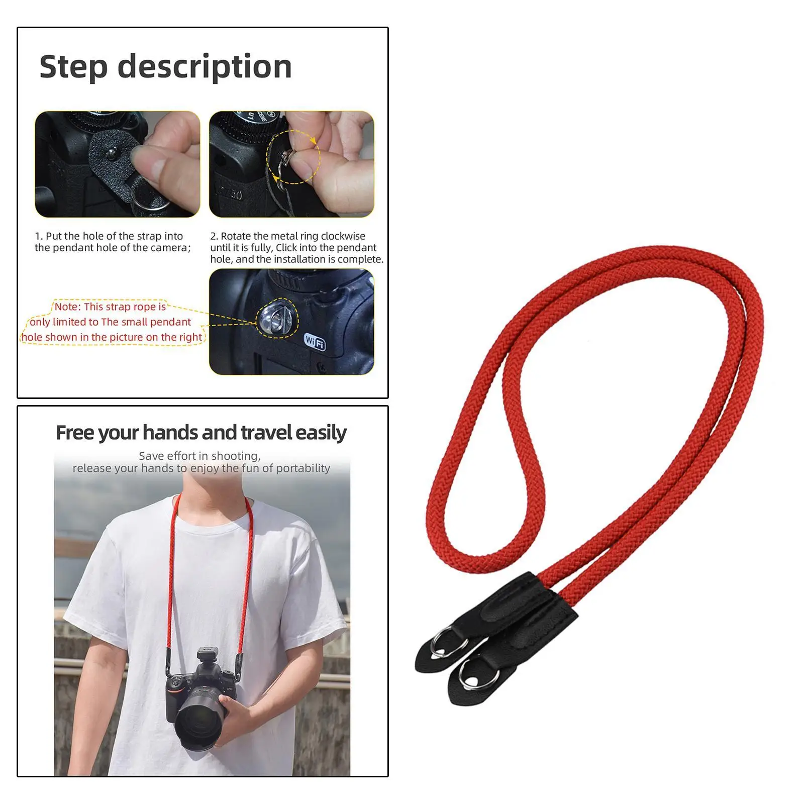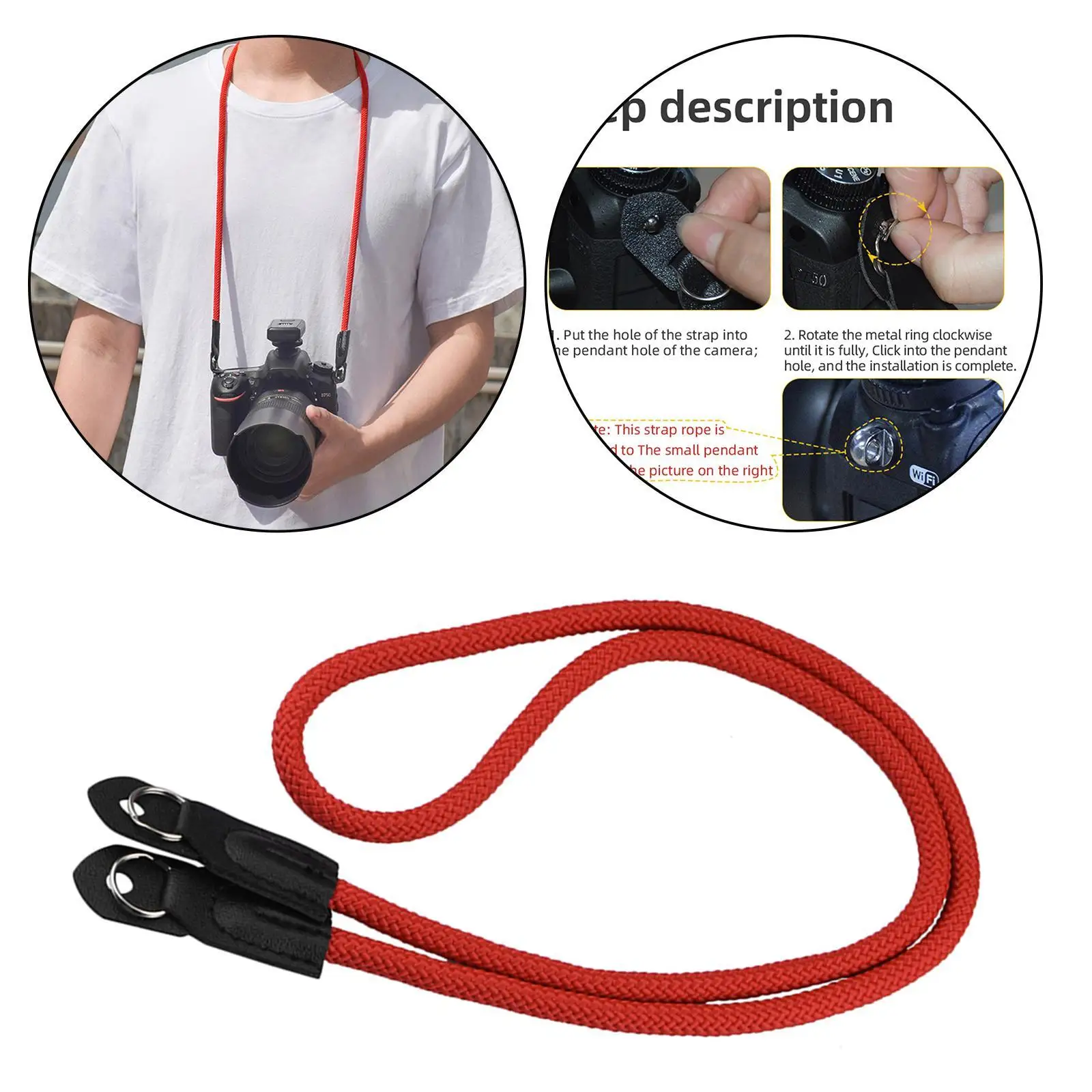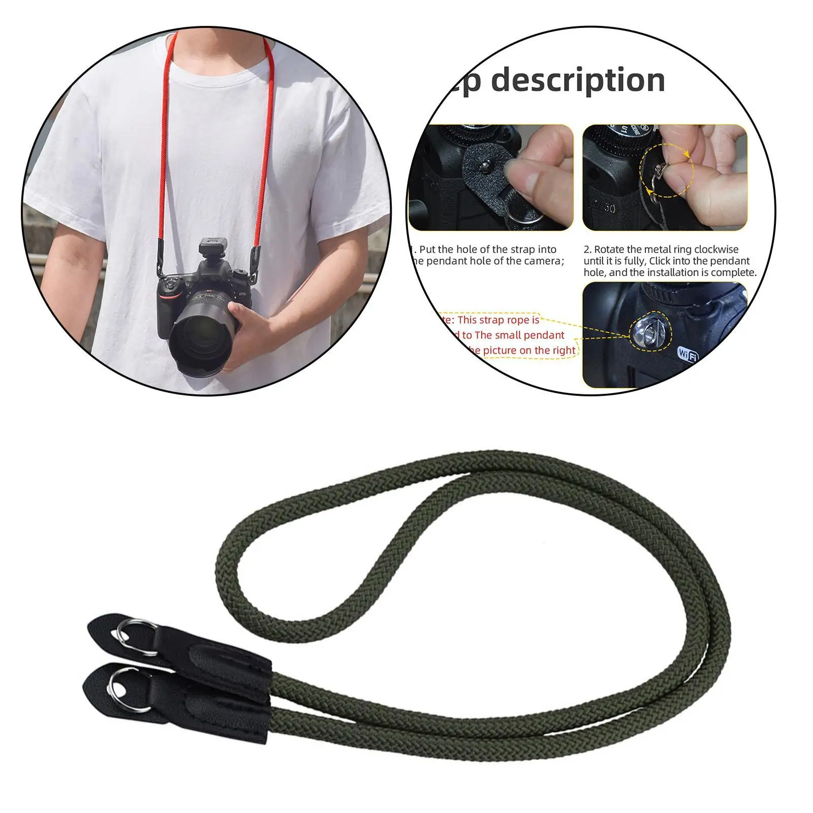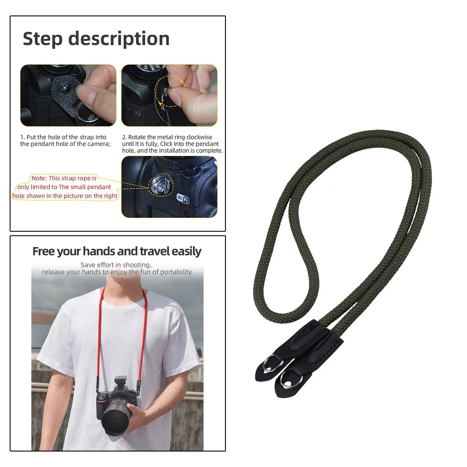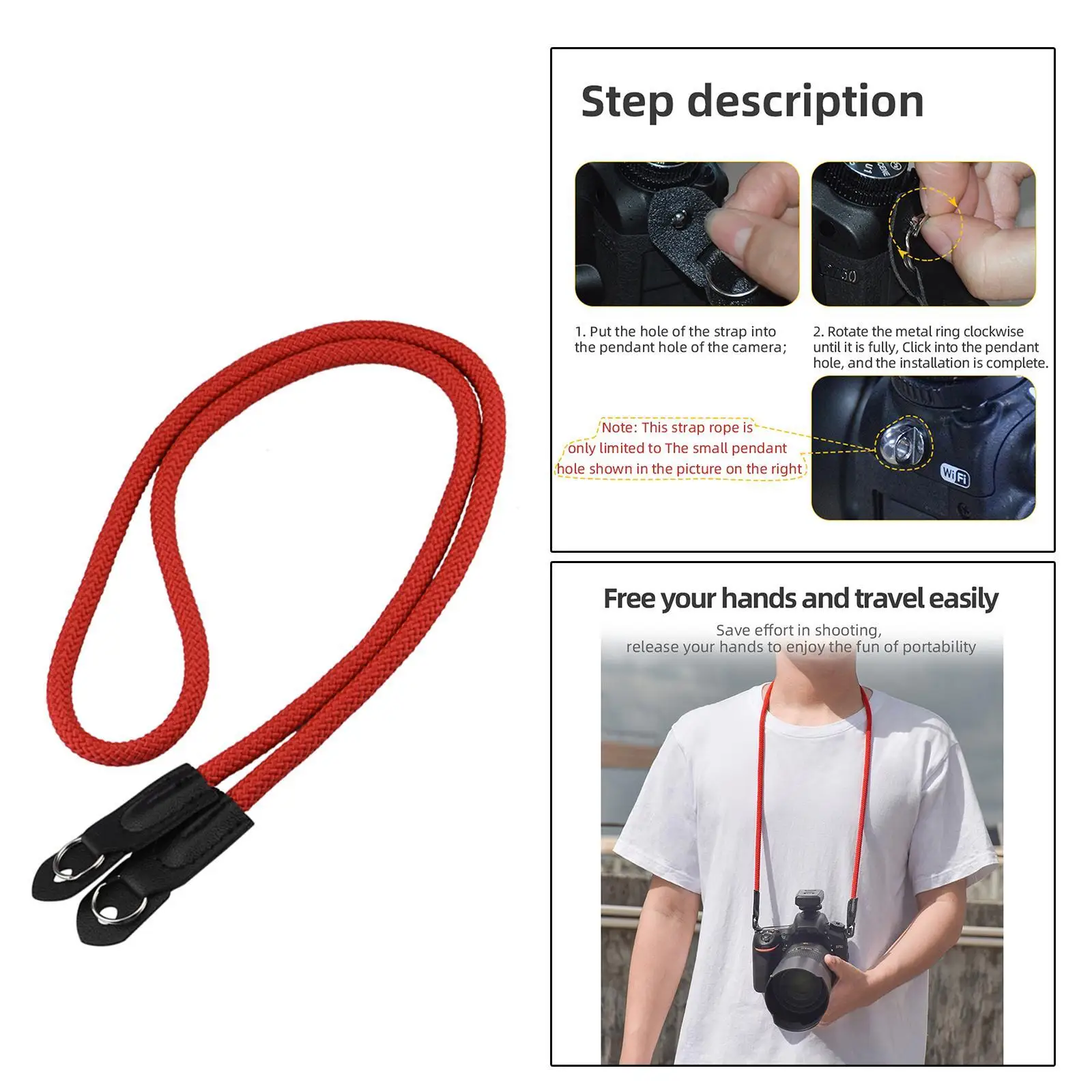 Descripción: Esta gran correa de la cámara es amde cuerda de escalada de nylon con un diámetro de 9mm y una longitud de 100cm, flexible y duradera. Colgado sobre el hombro, alrededor del cuello o simplemente la cámara alrededor de la muñeca. Fácil de instalar, la correa de transporte se puede utilizar para colgar cámaras retro o micro cámaras individuales. Esta correa de cámara es adecuada para mujeres y hombres. Simple, elegante y elegante, regalo perfecto para tus amigos que aman tomar fotos. Tabla de tallas: Longitud: aprox. 100cm/39,37 pulgadas Diámetro: aprox. 9mm/0,35 pulgadas El paquete incluye 1 pieza de correa para cámara