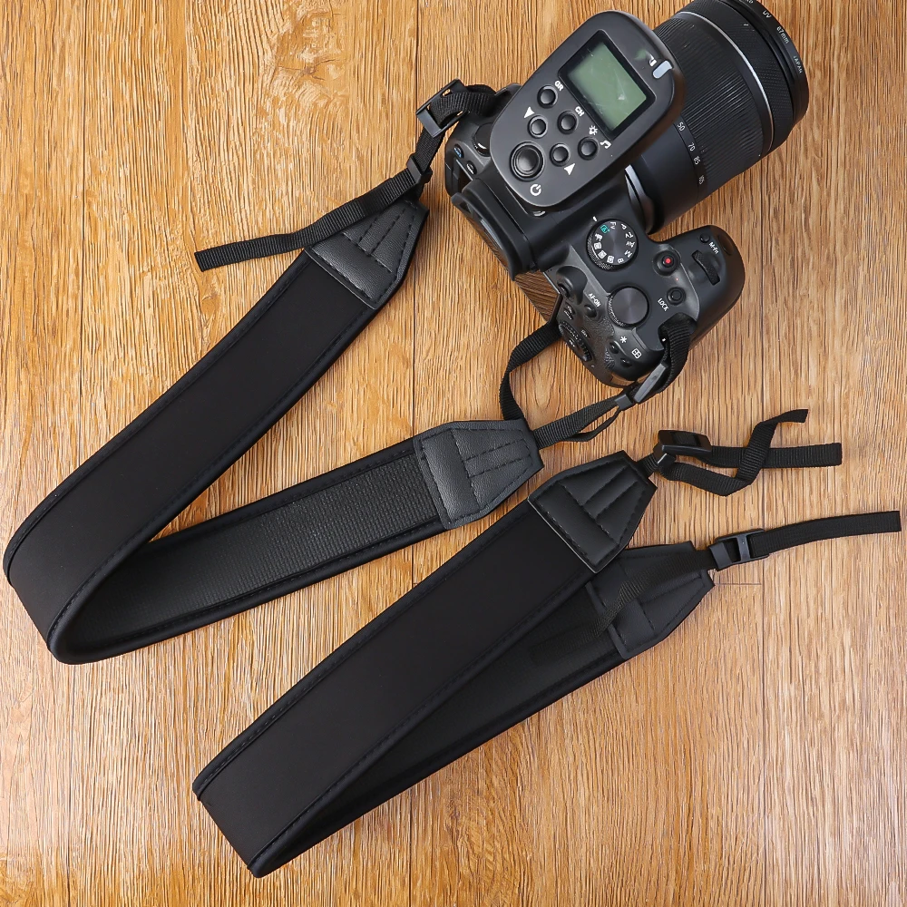 【AJUSTABLE Y VERSÁTIL】: La longitud total de aproximadamente 75cm permite un ajuste personalizado, adaptándose a varios tipos de cuerpo y tamaños de cámara. La Correa frontal ajustable de 1cm de ancho garantiza una sujeción segura, mientras que la correa principal de 56*5*0,5 cm proporciona una amplia amortiguación.
