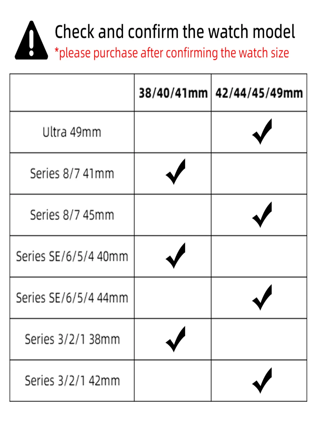 Tamaño de la correa del Apple Watch: longitud de la correa ajustable y se desliza fácilmente en la hebilla para un ajuste seguro. Comprueba el tamaño en la parte posterior del reloj para elegir el tamaño correcto.
