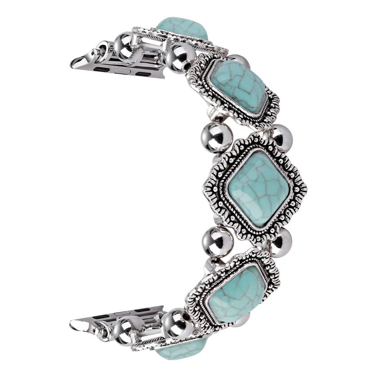 Comprar Correa Vintage de acero inoxidable turquesa para Apple Watch, banda de 42, 44, 45, 49mm, 38, 40, 41mm para Apple Watch Series Ultra Se 8, 7, 6, 5, 4, 3, 1 unidad/2/1