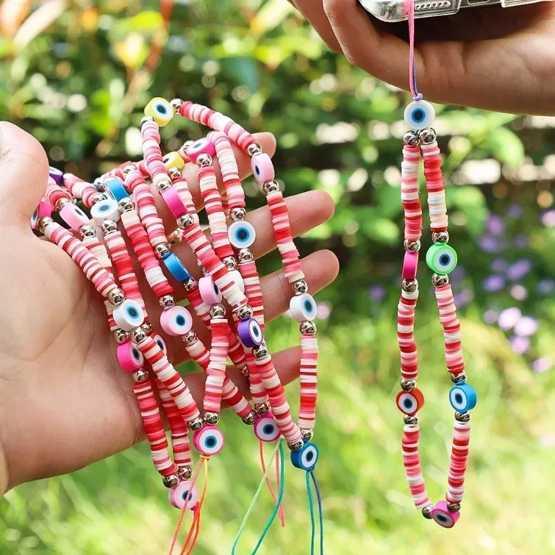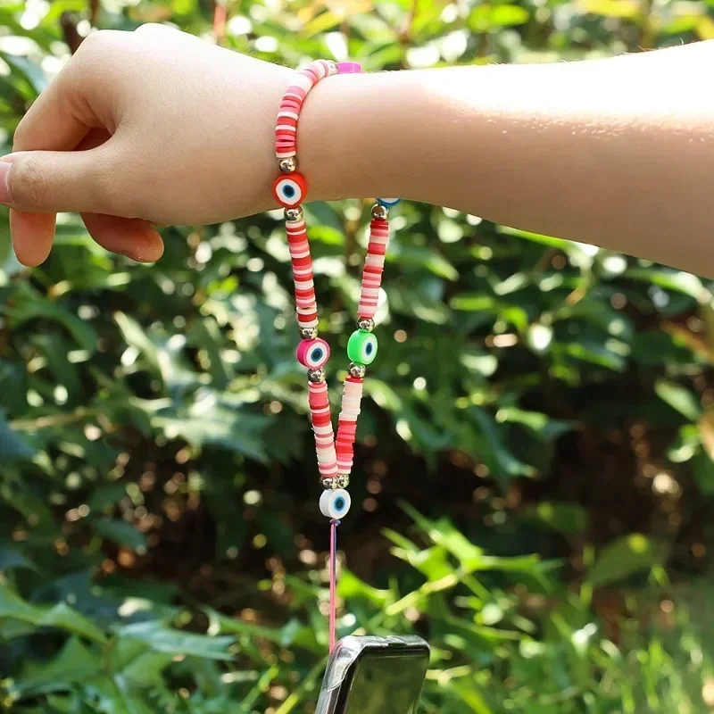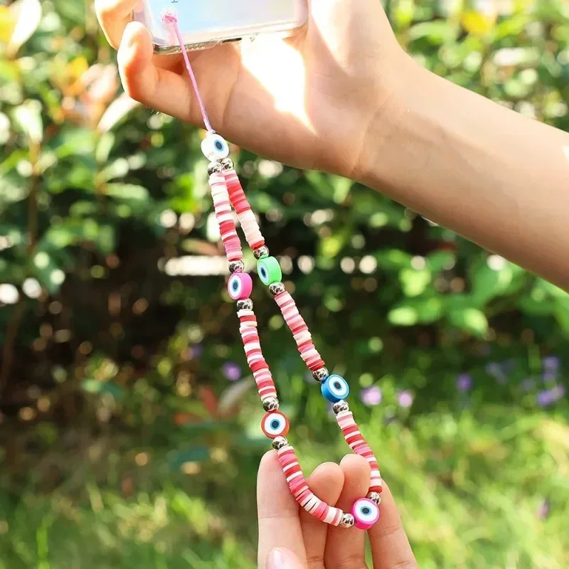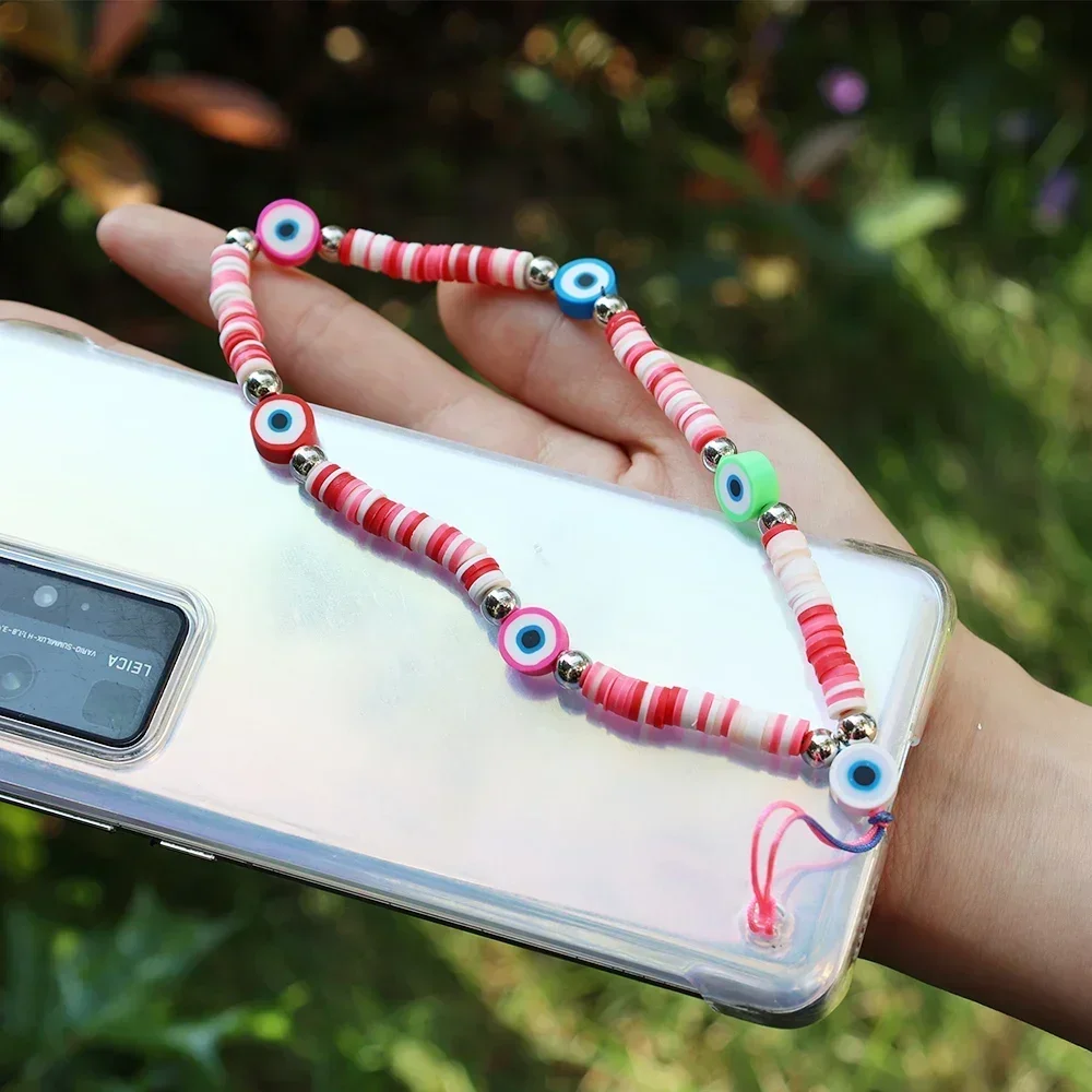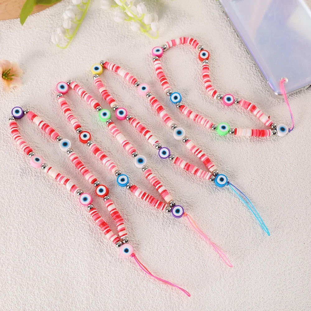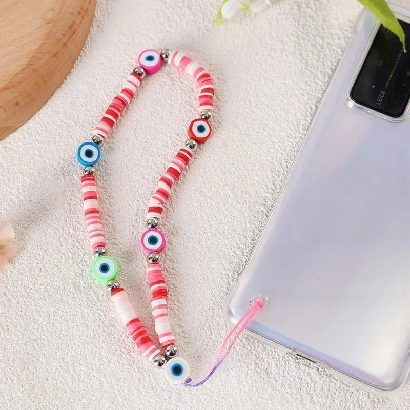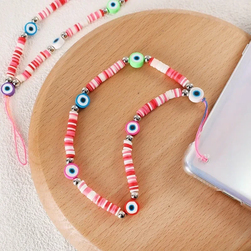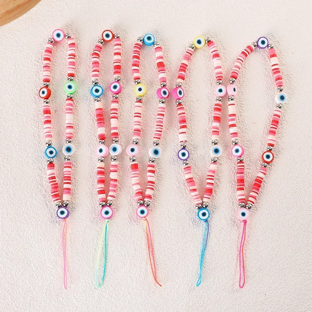 Nombre: Cadena de teléfono de polímero de ojo del Diablo Material: silicona Categoría: cordón de teléfono móvil Estilo: elegante, simple, versátil Tamaño: aproximadamente 21cm de largo Aplicable: todos los días, parejas, regalos