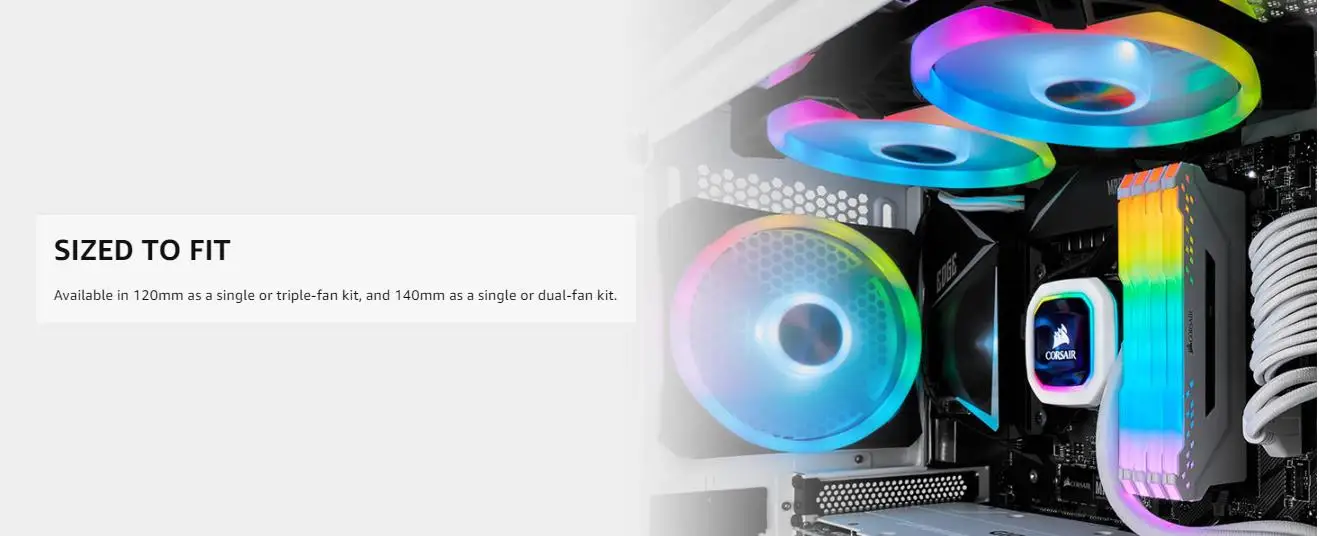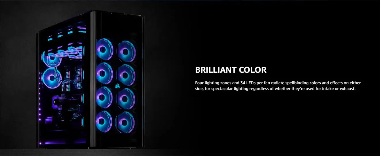 Cuatro zonas de iluminación y 34 LED RGB direccionables individualmente irradian colores y efectos fascinantes a ambos lados, independientemente de si se utilizan para admisión o escape, para mejorar su sistema refrigerado por RGB CORSAIR QL.