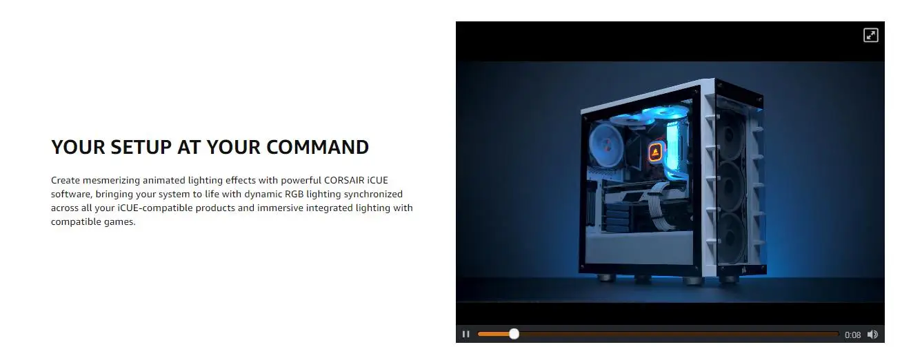 Crea fascinantes efectos de iluminación animados con el potente software CORSAIR iCUE, dando vida a tu sistema con iluminación RGB dinámica sincronizada en todos tus productos compatibles con iCUE e iluminación integrada inmersiva con juegos compatibles. Requiere un controlador de iluminación CORSAIR iCUE RGB, se vende por separado.