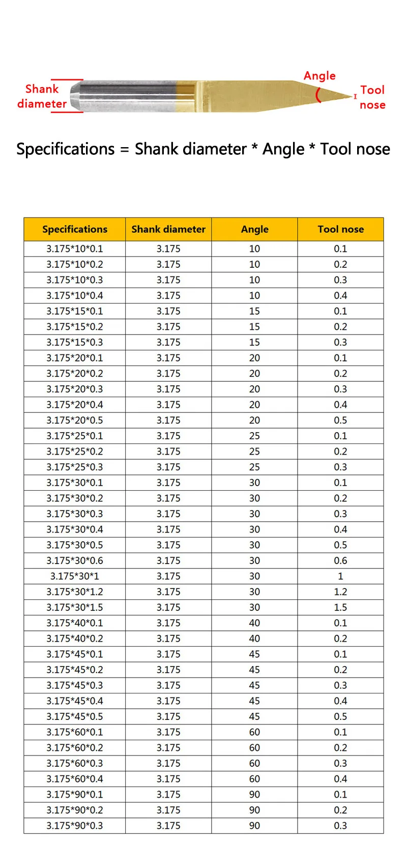 Comprar Cortador de grabado en forma de V, 10 piezas, 3.175, 1/8, PCB, herramienta de enrutador CNC, cortador de fresado de titanio en forma de V