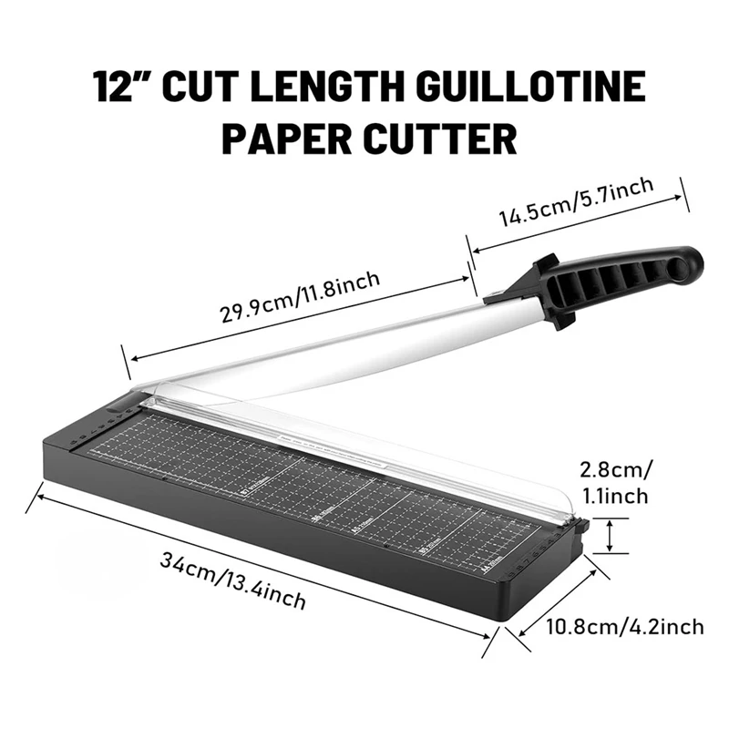 [Potente capacidad de 10 páginas] Este cortador de papel de guillotina puede cortar fácilmente 10 páginas (papel de 16 lb/11,7 pulgadas).Cortar menos papel a la vez prolonga la vida útil de la hoja, ahorrando dinero.Es perfecto para manualidades y puede manejar papel de impresora, pegatinas, imágenes, etiquetas y cartulina como un profesional.